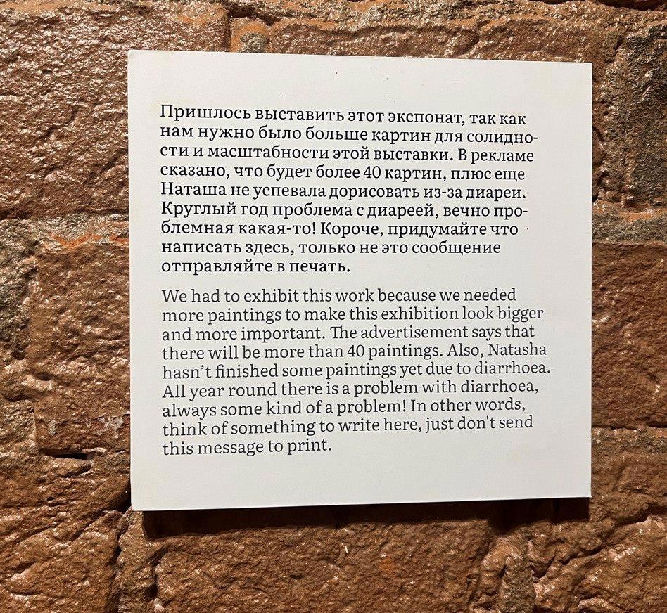 Сильно раздражало огромное количество пояснений к выставке: подробное водянистое описание выставки на сайте, гигантское описание на входе, большие описания ко многим экспонатам и фильм с создателями выставки, описывающими идею выставки