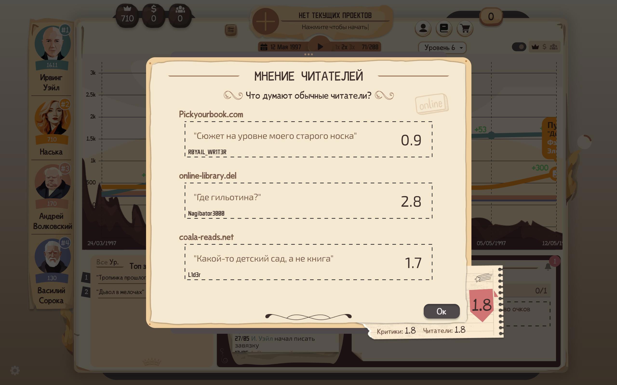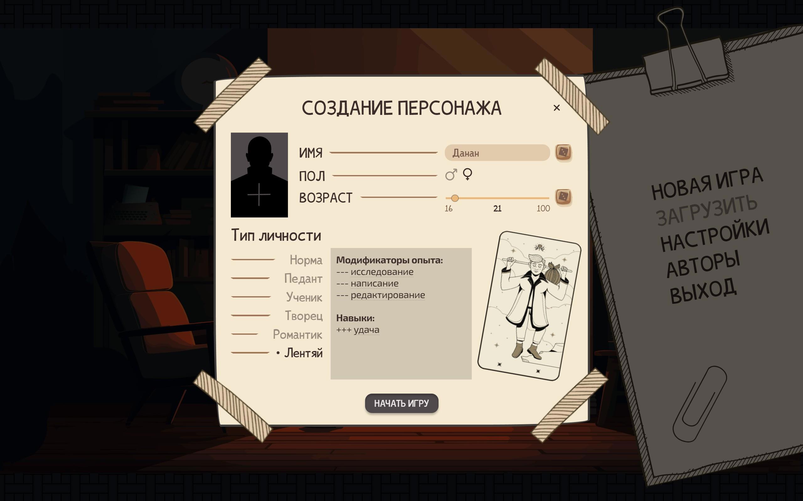 В игре есть своего рода "классы" - типы писателей - которые дают те или иные бонусы и штрафы: