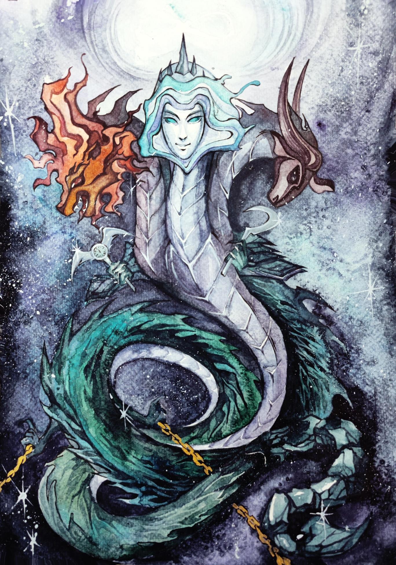 Автор: Лучезар РатибораОколо трёх лет я вынашивал идею качественно изобразить изначального бога Хроноса. Не Кроноса, который также является божеством времени, который есть ипостась Хроноса, его часть, а именно персонификацию извечного Времени. Я мечтал изобразить само Время, появившееся первым в этой Вселенной Порядка, ставшее подложкой для формирования и условием существования энергии и её упорядоченной формы — материи, таким образом, как оно впервые упоминается в истории человечества.