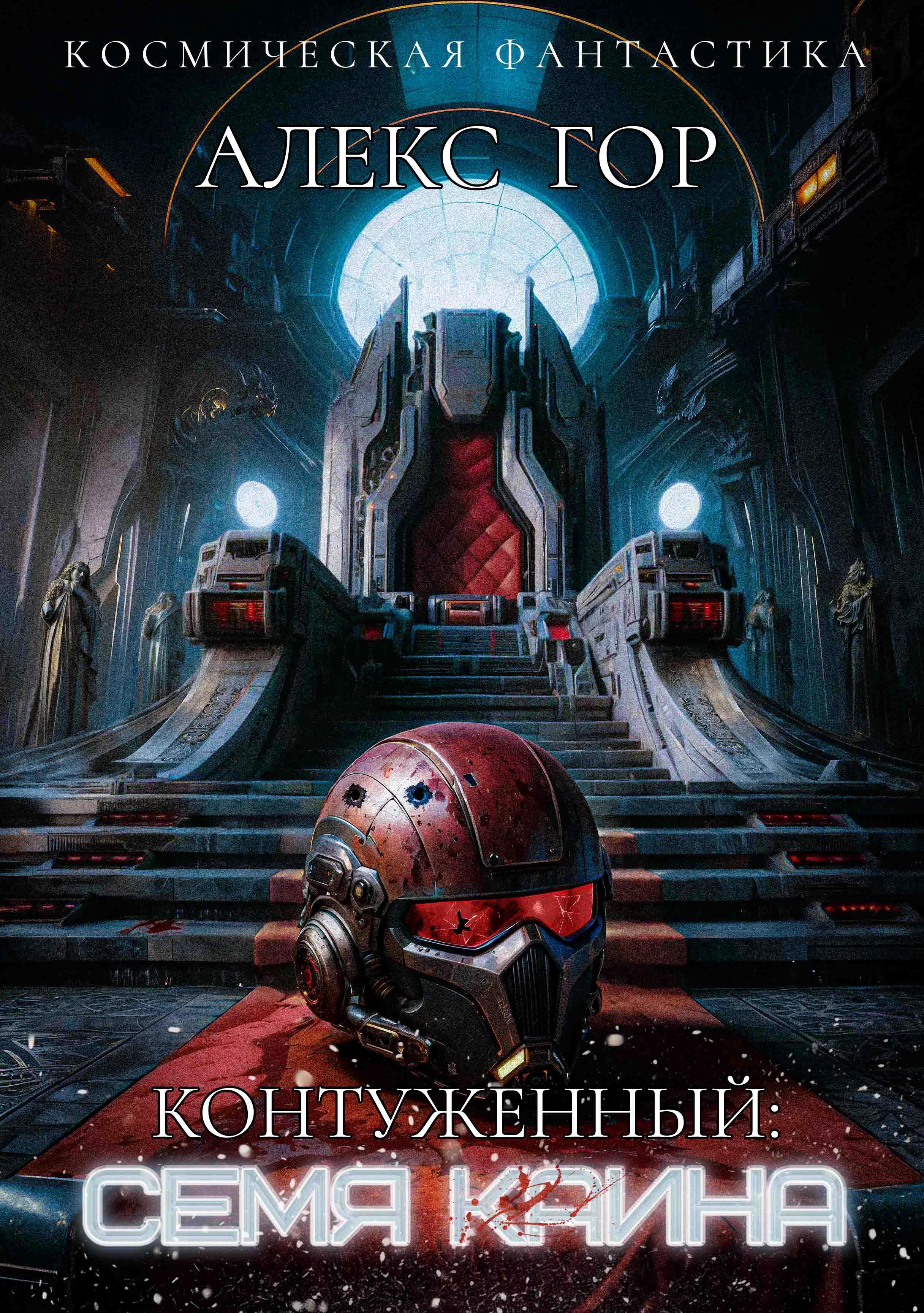 "Трон императора космической империи, на троне лежит простреленный и повреждённый шлем космического десантника футуристического вида". Позже в ТЗ добавилось пожелание о мече, воткнутом либо в трон, либо в шлем. Я сделал два варианта, которые мне нравятся одинаково. Мы так и не смогли выбрать, какой из них лучше, поэтому до финальной стадии дошли оба.