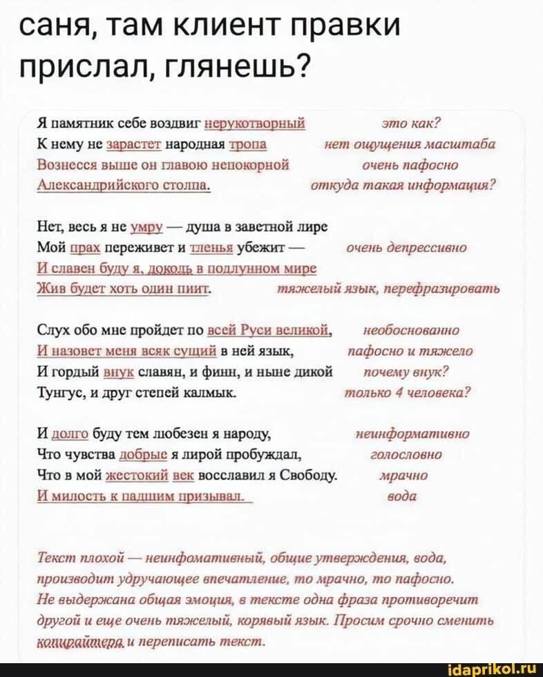 - Вы написали "Я помню чудное мгновенье", Александр. Сможете обосновать, почему чудное?