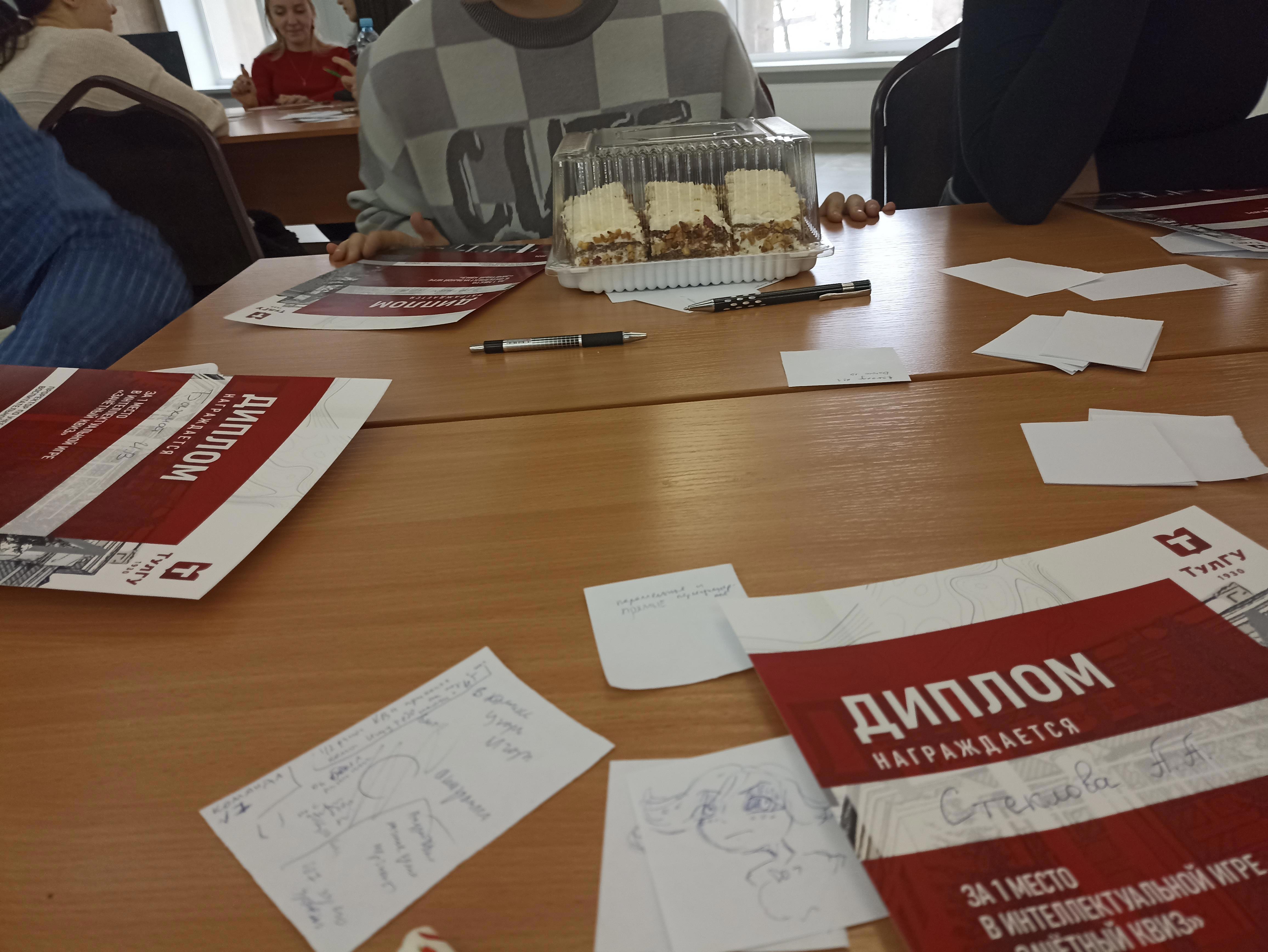 Ну ещё сегодня в "Что? Где? За что?" играли. Не на каком-то крупном уровне, конечно, а так, в универе. Кстати, наша команда первое место заняла. Тортик дали.
