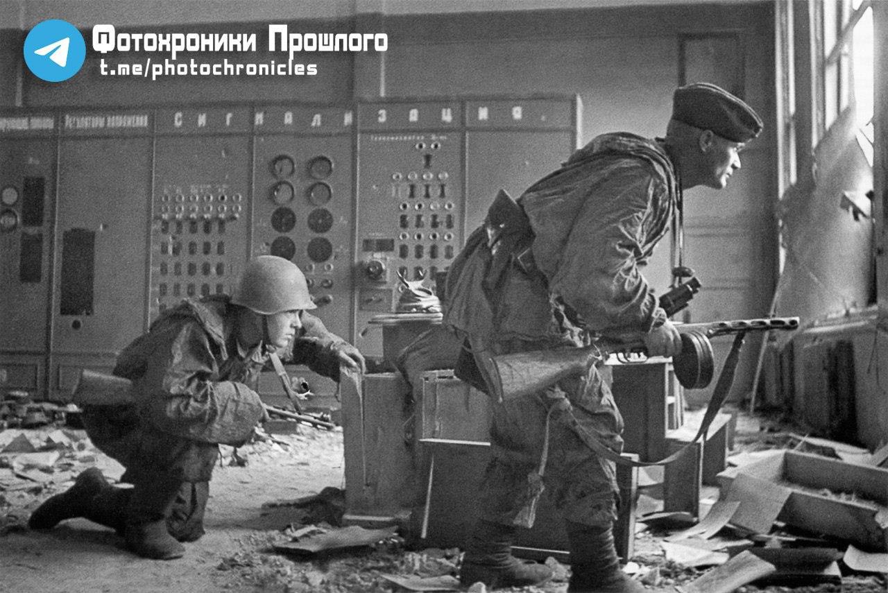Автор: Николай БергРазведчики 1031-го артиллерийского полка в помещении главного пульта управления Воронежской электростанции (ВОГРЭС), август 1942 года