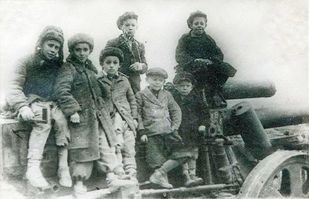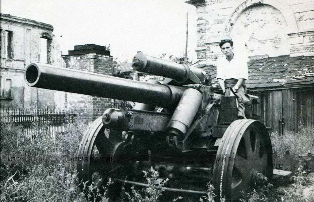 Детвора верхом на 150-миллиметровой тяжёлой полевой гаубице образца 1918 года 15-cm schwere Feldhaubitze 18.