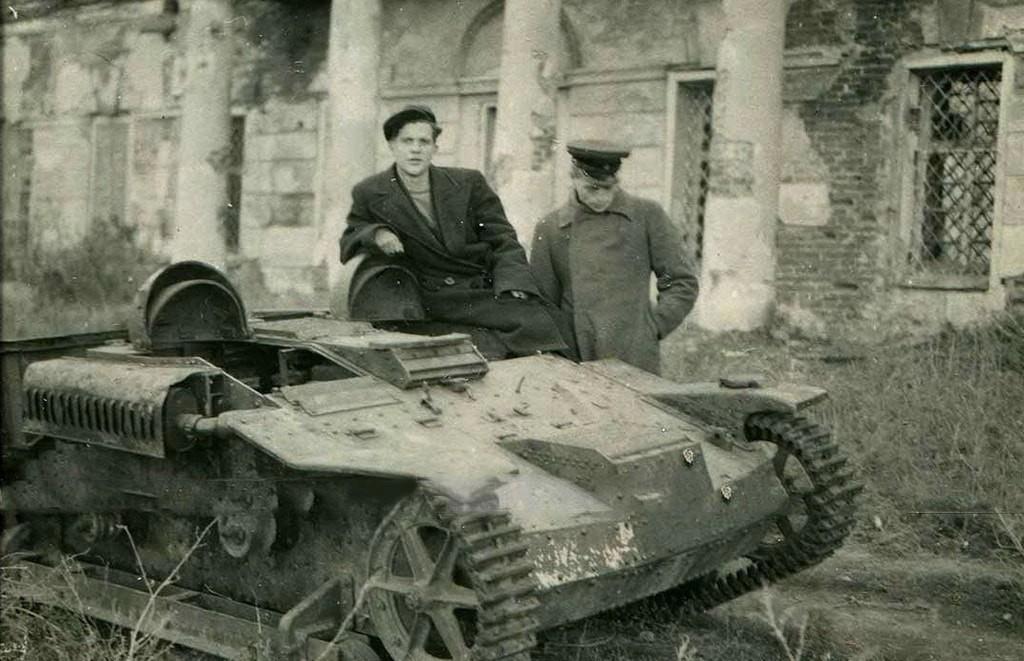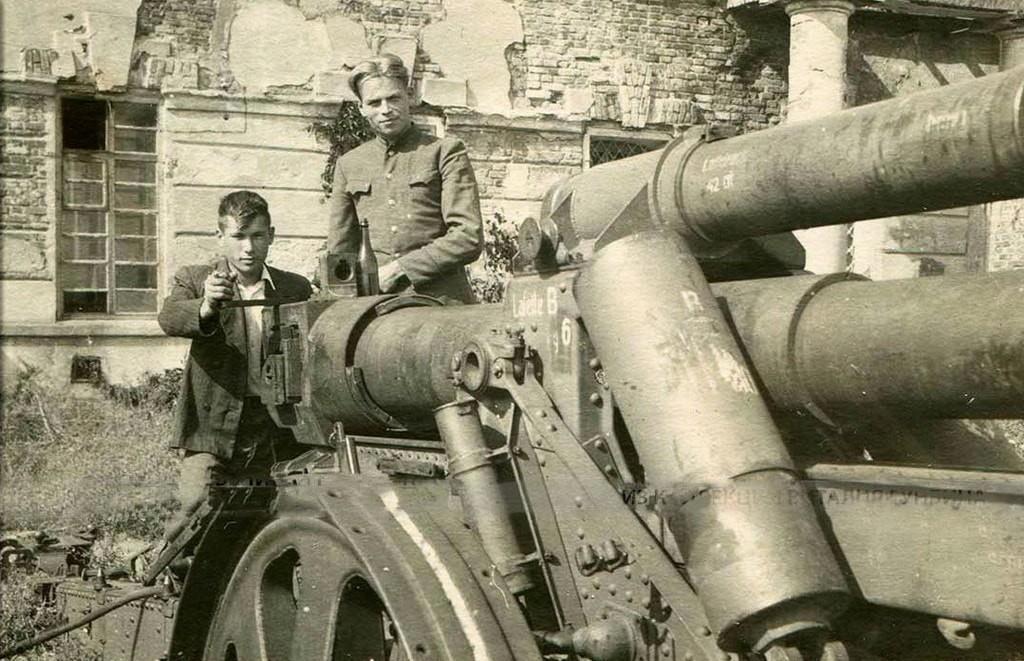 Трофейная техника и артиллерийские орудия, захваченные Красной Армией у вермахта. На переднем плане два товарища позируют фотографу сидя в французском легком танке Renault R35 c демонтированной башней. В ходе французской кампании 1940 года 843 танка Renault R35 в исправном состоянии попало в руки к немцам, которые продолжили их дальнейшую эксплуатацию в различных качествах.(с)