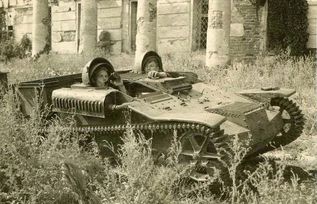 Легкий бронетранспортер Renault UE Chenillette. Летом 1940 года вермахтом во Франции было захвачено более 3000 бронетранспортеров данного типа, после чего их эксплуатировали в качестве легких тягачей, перевозчиков боеприпасов, снегоочистителей, они служили платформой для установки артиллерийских орудий, а в люфтваффе Renault UE вооруженные пулеметом использовались для охраны аэродромов.(с)