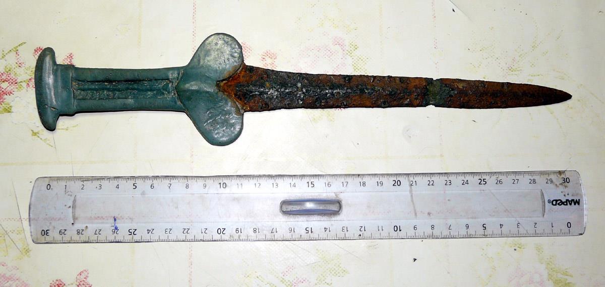 Бывали акинаки и большие, и маленькие. Кстати, грань между кинжалом и мечом очень тонка. Обычно акинак до 35 см называют кинжалом, а свыше 35 записывают в мечи. Но, повторюсь, такая градация условна. Вот, кстати, чудный образец малыша: