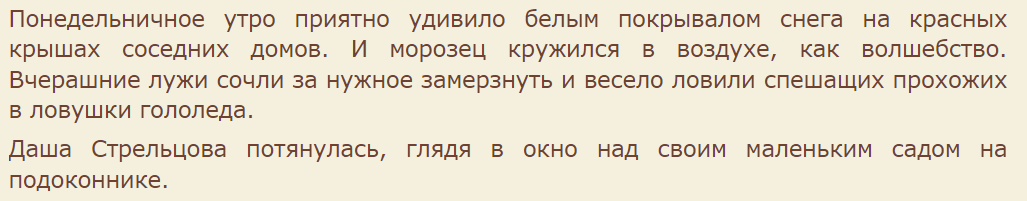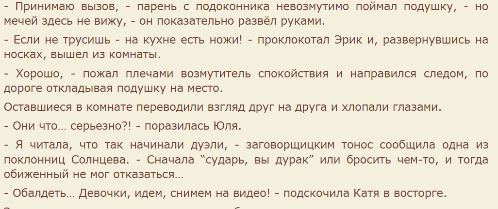 P.S.: в тексте могут встречаться опечатки, но это нормально для книги в процессе (и вообще в целом, имхо, тоже нормально). И тут я поспорю с Дашей Стрельцовой насчёт обязанностей писателя и т.п. И согласна с Ди Капустиной: автор это не корректор. Я, например, тоже очень нескоро начинаю видеть опечатки в собственном тексте.