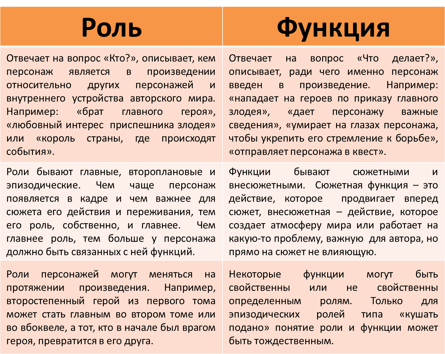 Но, в принципе, и функцию свою персонаж выполняет далеко не всегда, особенно если автору недостает умения показать то, что он хотел бы. Так что бывают и заявленные функции, да-с.