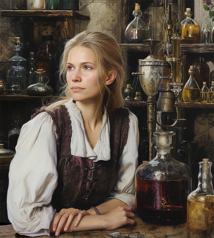 Автор: Элина ЛитераСуета с обложками разбудила во мне спящего полудизайнера, и я взялась за перекройку обложек. В основном добавила имя автора (почему-то на первых книгах я забывала). Решила сменить лицо на обложке "Тонкостей зельеварения", и нейронка выдала мне в конце концов вполне хорошую Мадлен, добила ей окружающую лабу, но на обложку она не села. На обложке она смотрится тускло и никак а еще намекает на СЛР. Поэтому обложке я только сменила шрифты, а новая Мадлен пошла в иллюстрации. Вот они обе.