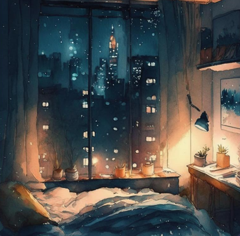 Для визуализации - уютная зимняя спальня от нейросети Kandinsky: