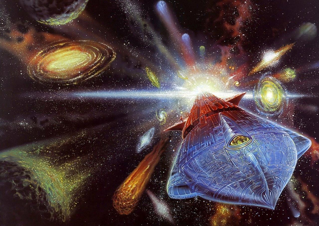 Данная иллюстрация выполнена для обложки книги Пола Андерсона "Тау Ноль" ("Tau Zero") в издании 1997 года.