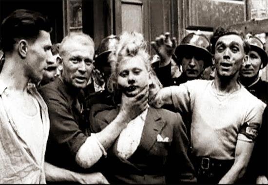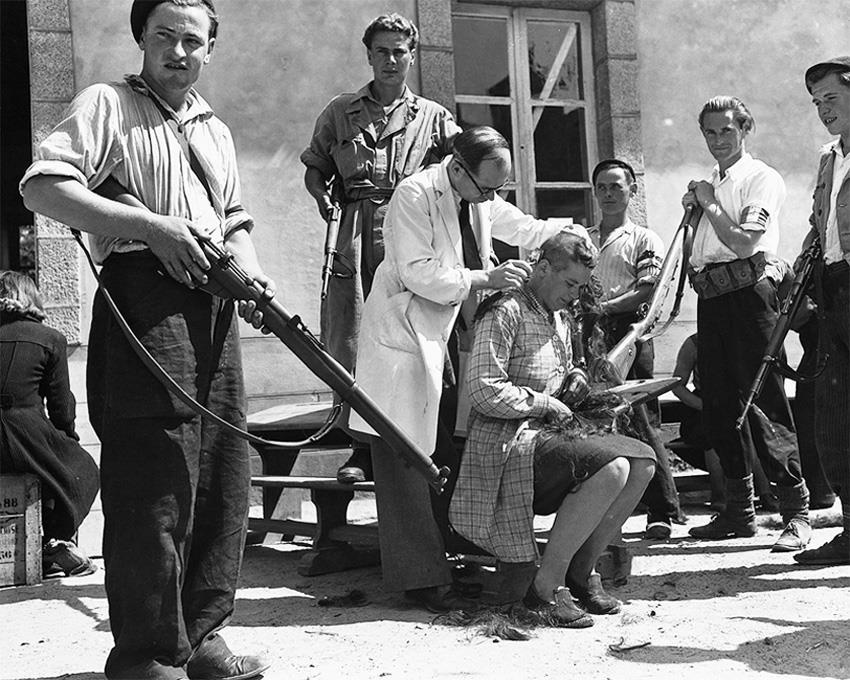 Из дневника Веры Николаевны Буниной, 24 августа 1944 года - "Была в городе. Все нарядные, у всех национальные ленточки, банты, пояса. Все рады... В мэрии стригут, оболваниют женщин, работавших с немцами". Храбрые французы заделавшись героями Сопротивления, после войны стали мстить оставшимся в оккупированной стране женщинам за то, что те спали с врагом.