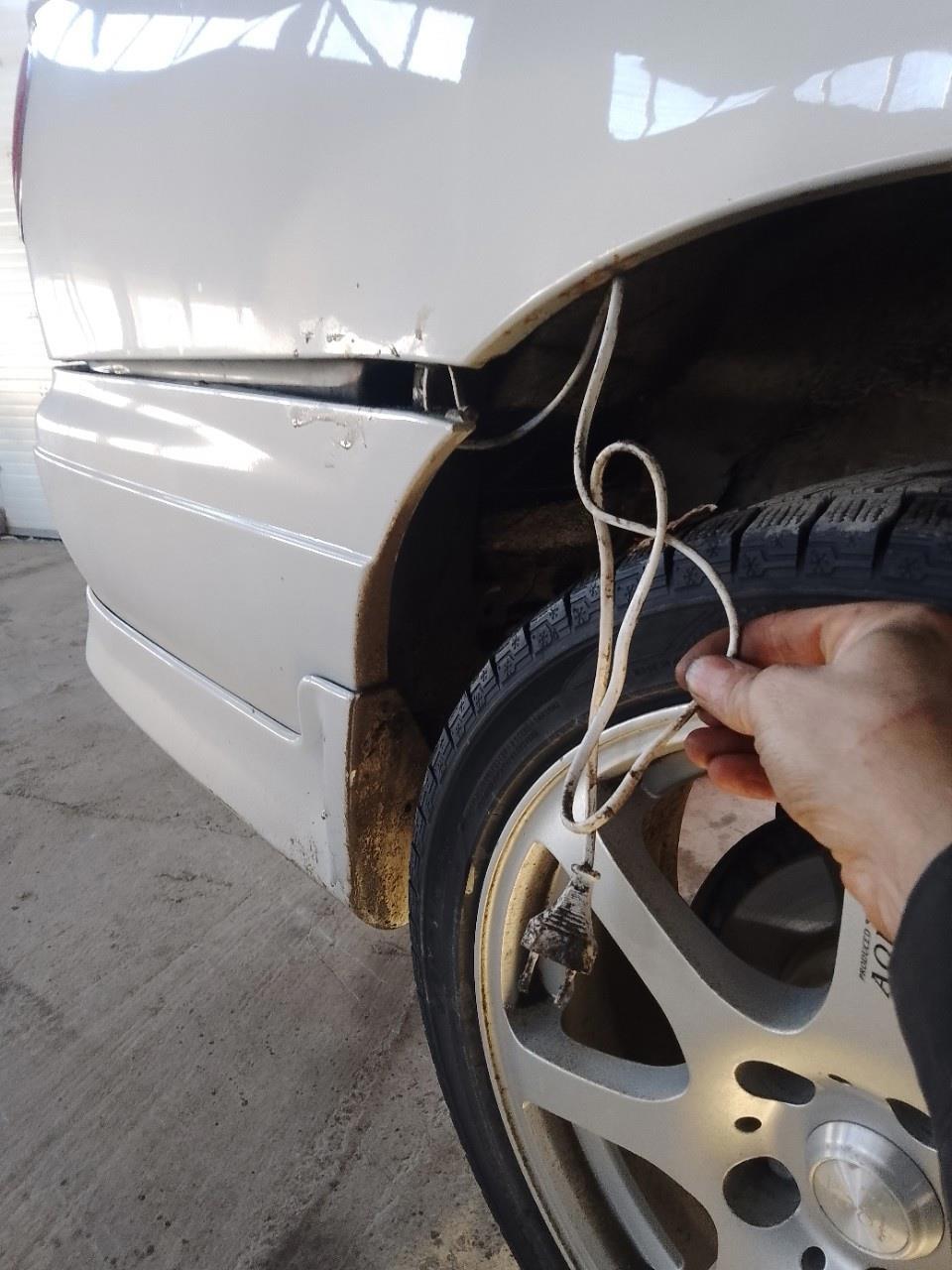 Ещё была прозьба закрепить задний бампер. Вот на этом он висел по приезду к нам.