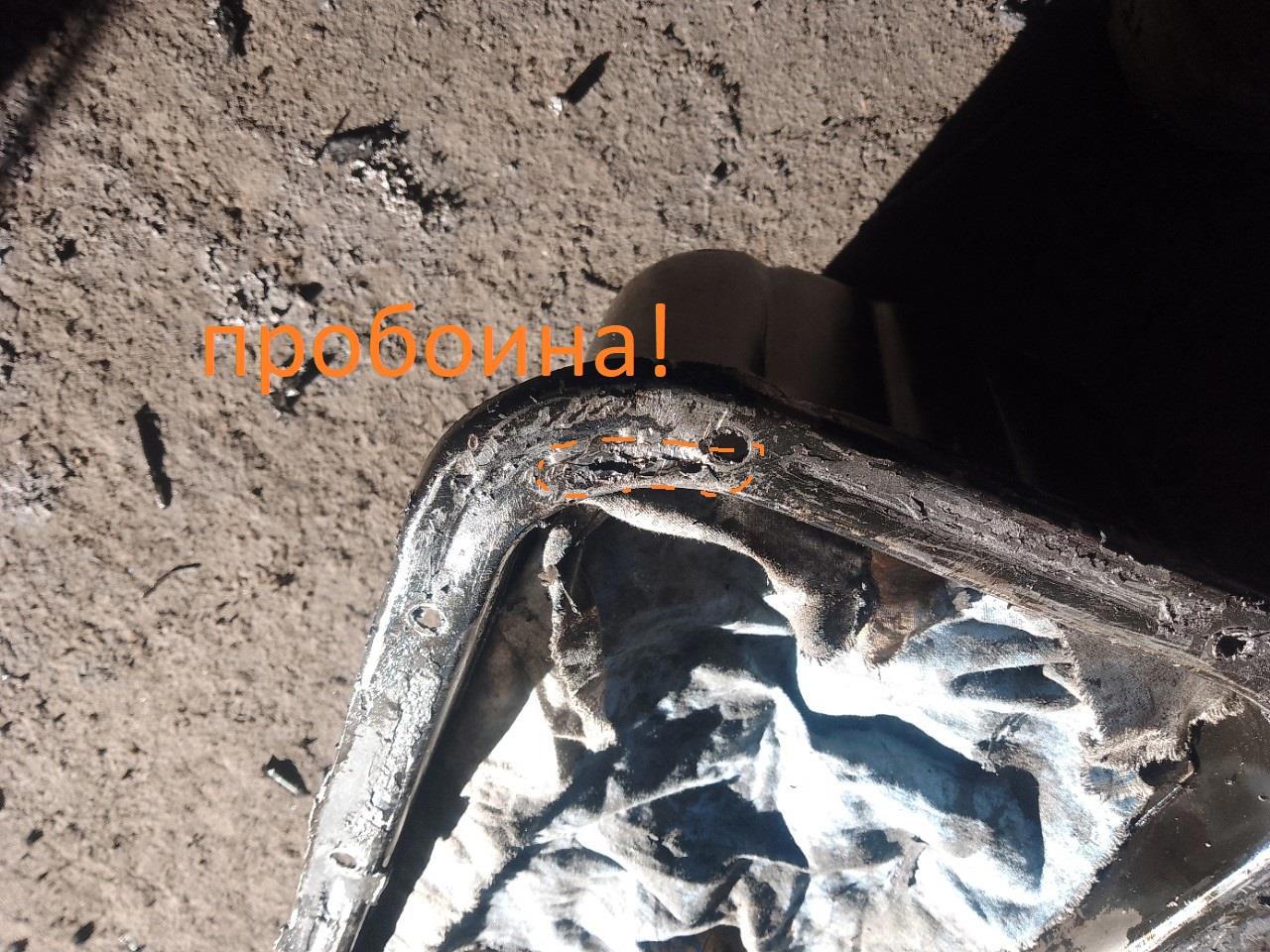 Затем снимаем поддон, убрав приемную трубу выхлопа и две балки, продольную и поперечную. Я обратил внимание на то, что болты, крепящие поддон, немного разные. И герметика слой толщиной в палец.
