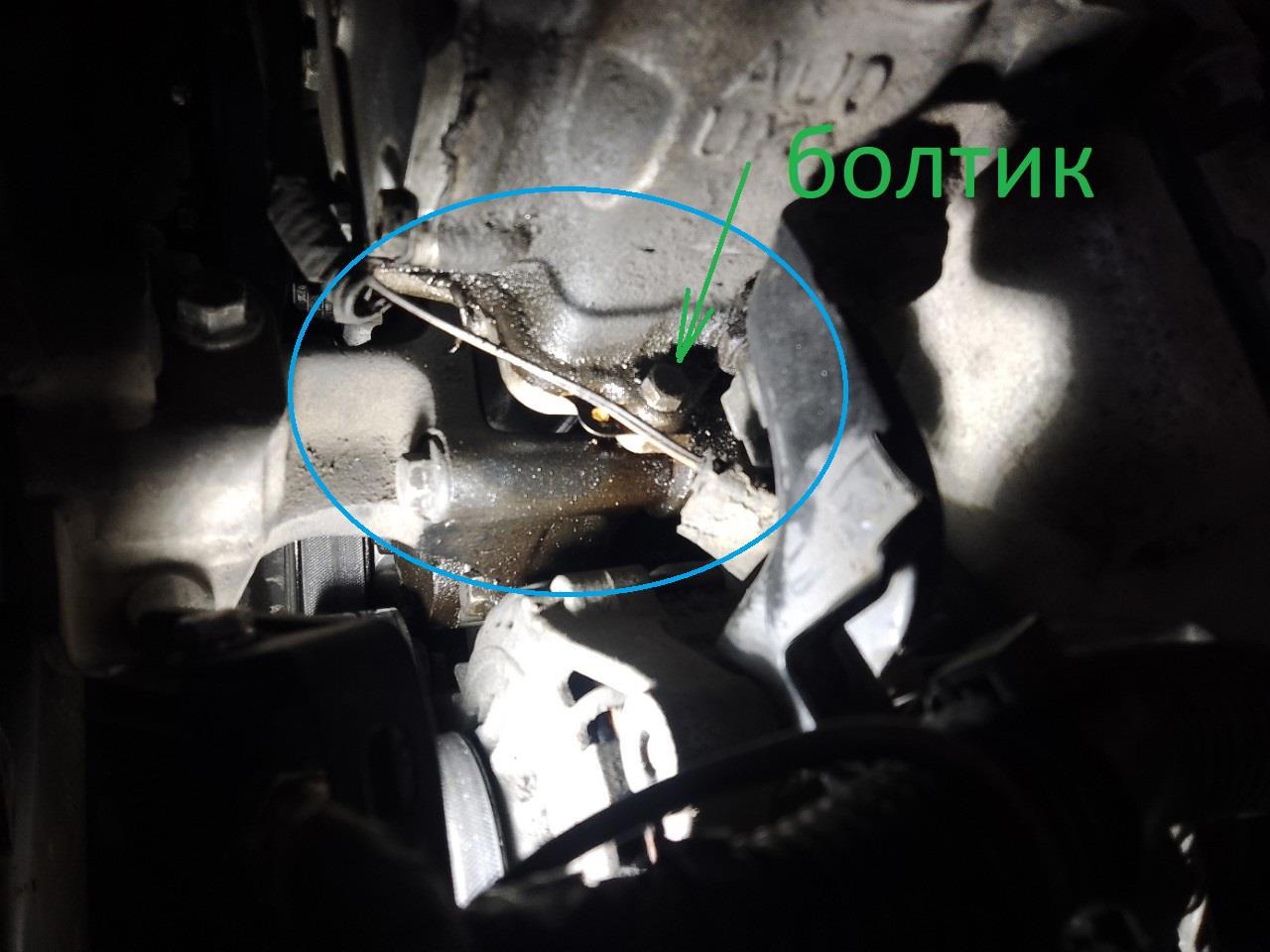 И сняв помпу, я обнаруживаю интересный нежданчик: сварной шов! И тот самый болтик, который я просил запомнить, вид снизу. Я думаю, вы уже понимаете, что произошло.