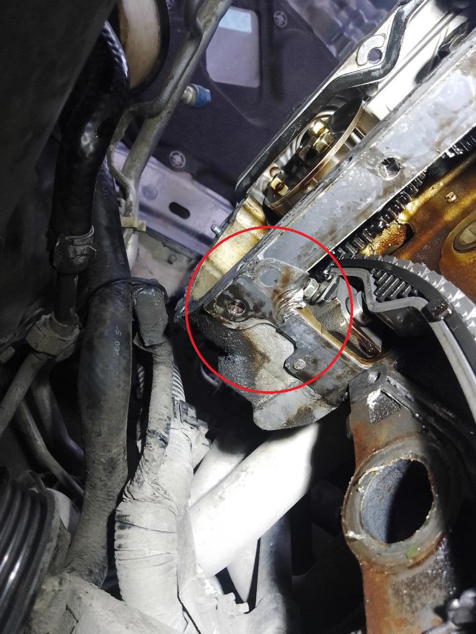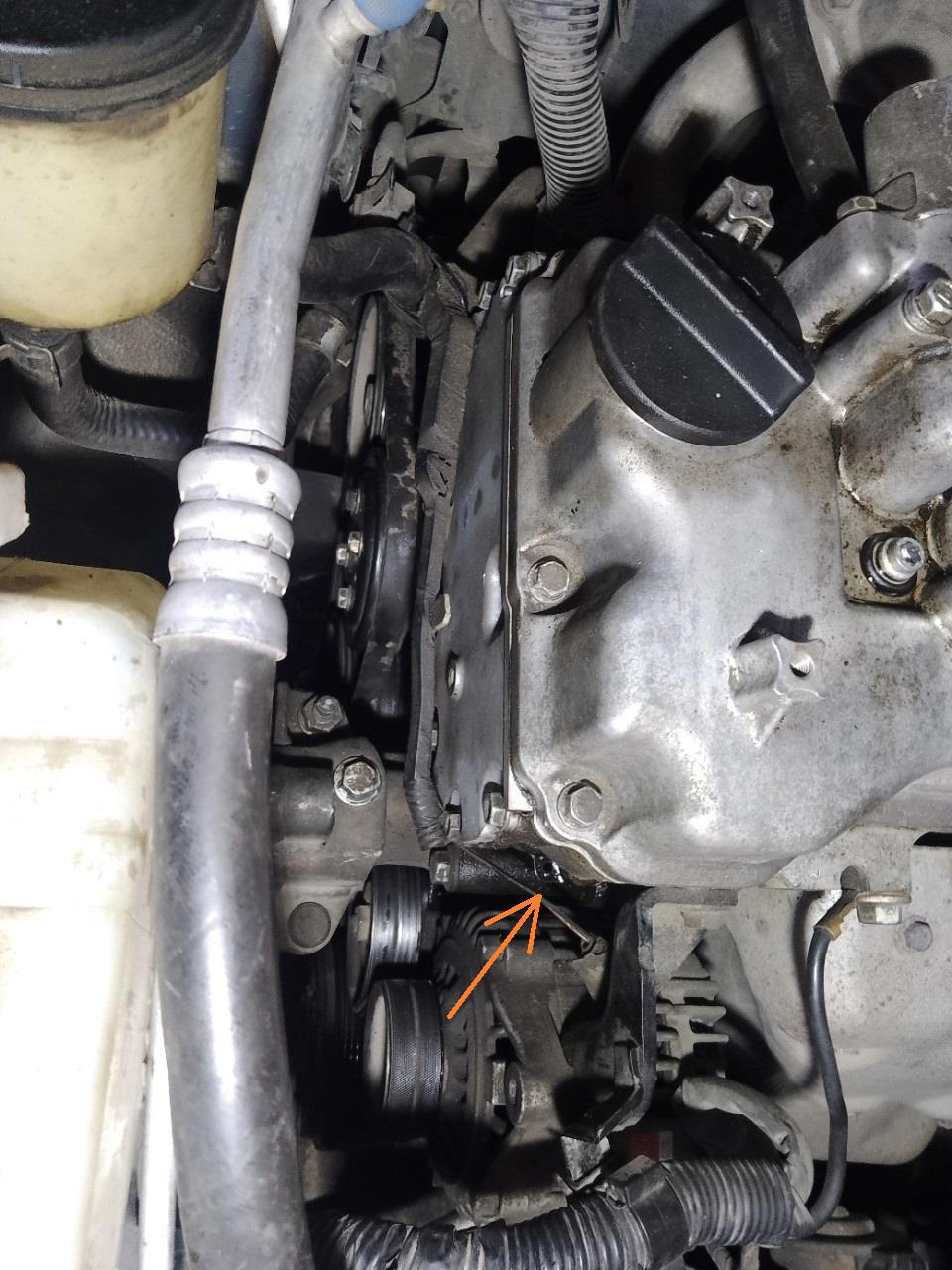 Течь локализовали, между передней крышкой ГРМ и головкой. Запомните этот болтик! У этих моторов такой нюанс, что уплотнение между крышкой и головкой идёт через прокладку ГБЦ, и если неправильно собрать - будет течь, что мы и имеем. Но это лишь небольшая часть айсберга...