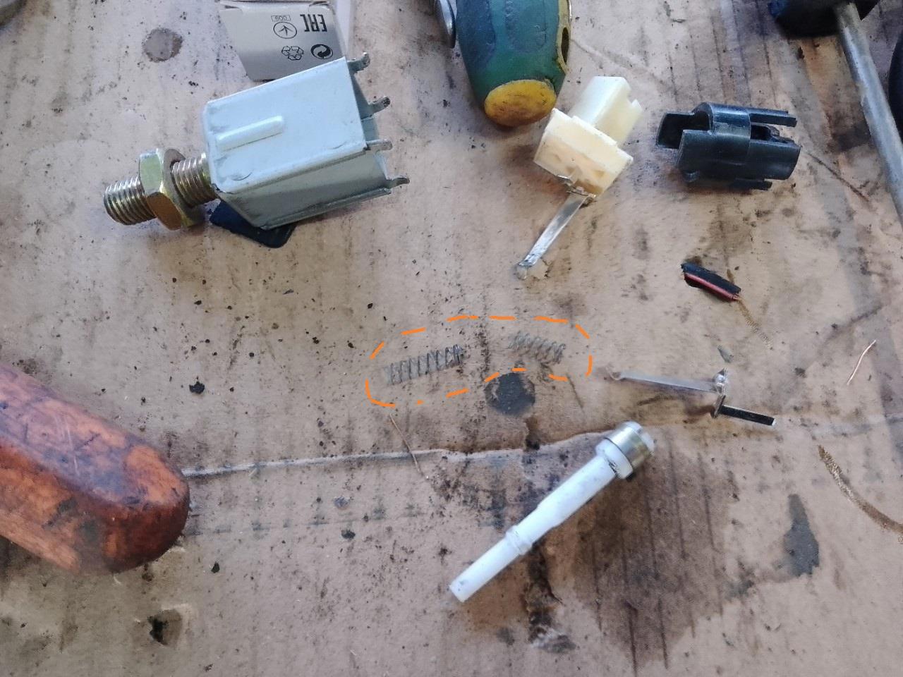 А вот она! Вынимаем, звоним - пусто. Развальцовываем. И видим сломавшуюся пополам возвратную пружинку.