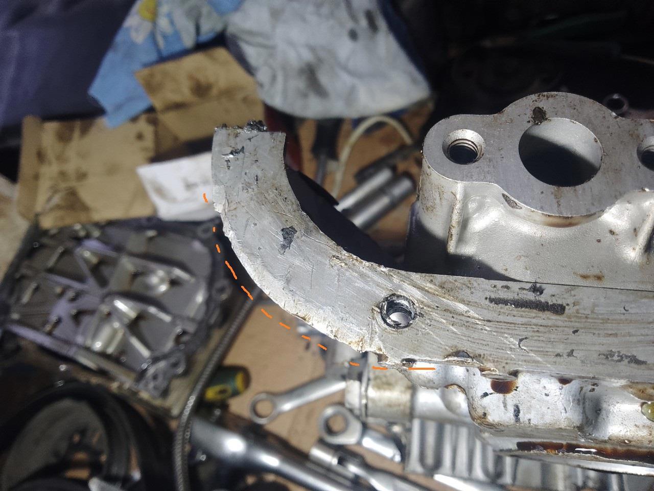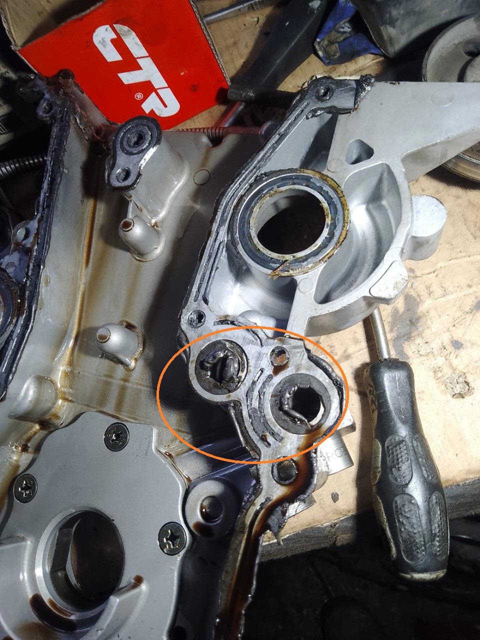 Два канала от маслонасоса, где вместо уплотнителей особой формы был герметик.