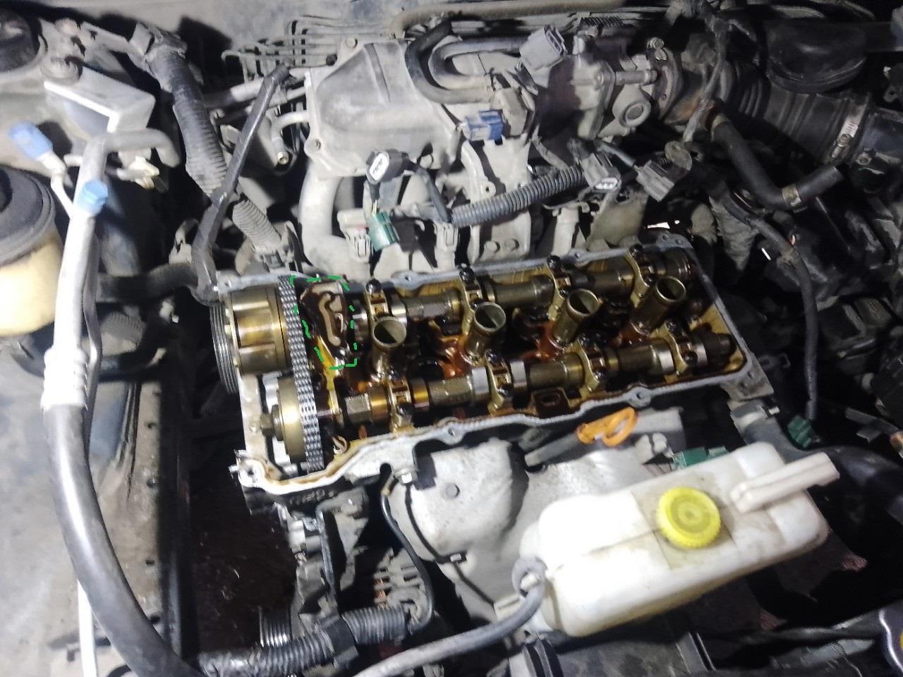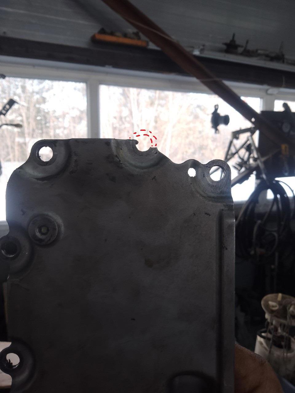 И вот тут меня ждал сюрприз всей моей жизни. Зеленым обозначен маслоканал к клапану системы изменения фаз газораспределения, клапан которой установлен в клапанной крышке. И все бы ничего, если б два болта, которые это все уплотняют, не были сломаны. Да! Просто, блин, сломаны, и вклеены сверху! Как там масло не ссало до этого - не известно, но у меня мотор обоссался из под болта ВВТ сразу! Я два часа не мог понять, что же там такое, пока наконец не прозрел! Было сделано временное решение, в крышке нарезана резьба на 8 и ввернута затычка, после чего ручей масла иссяк, но ВВТ работать не будет! Потом придётся чинить и это место! Снимать переднюю шейку распредвала, вынимать обломки болтов, и собирать всё заново, красиво и надёжно! Это п?:"*ц. Ещё 2 болта сорваны, которые крышку крепят по краю.