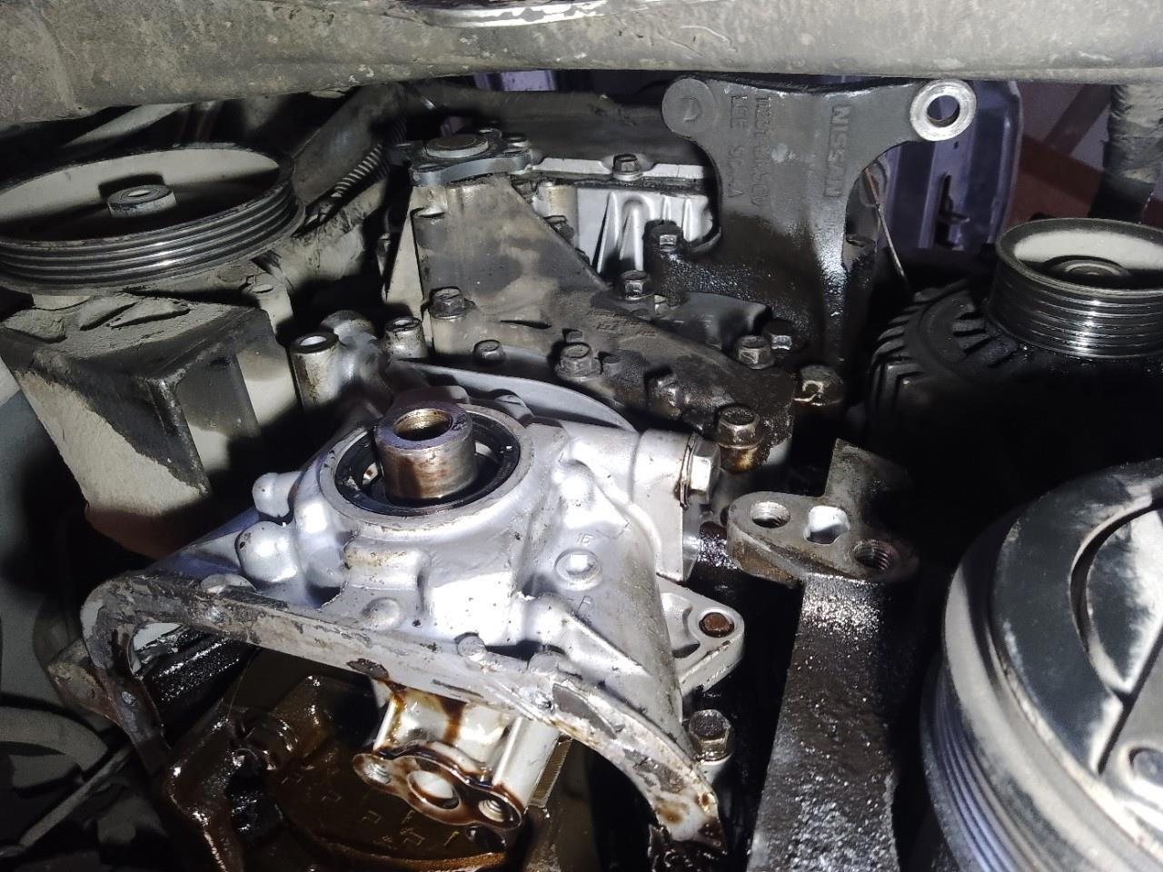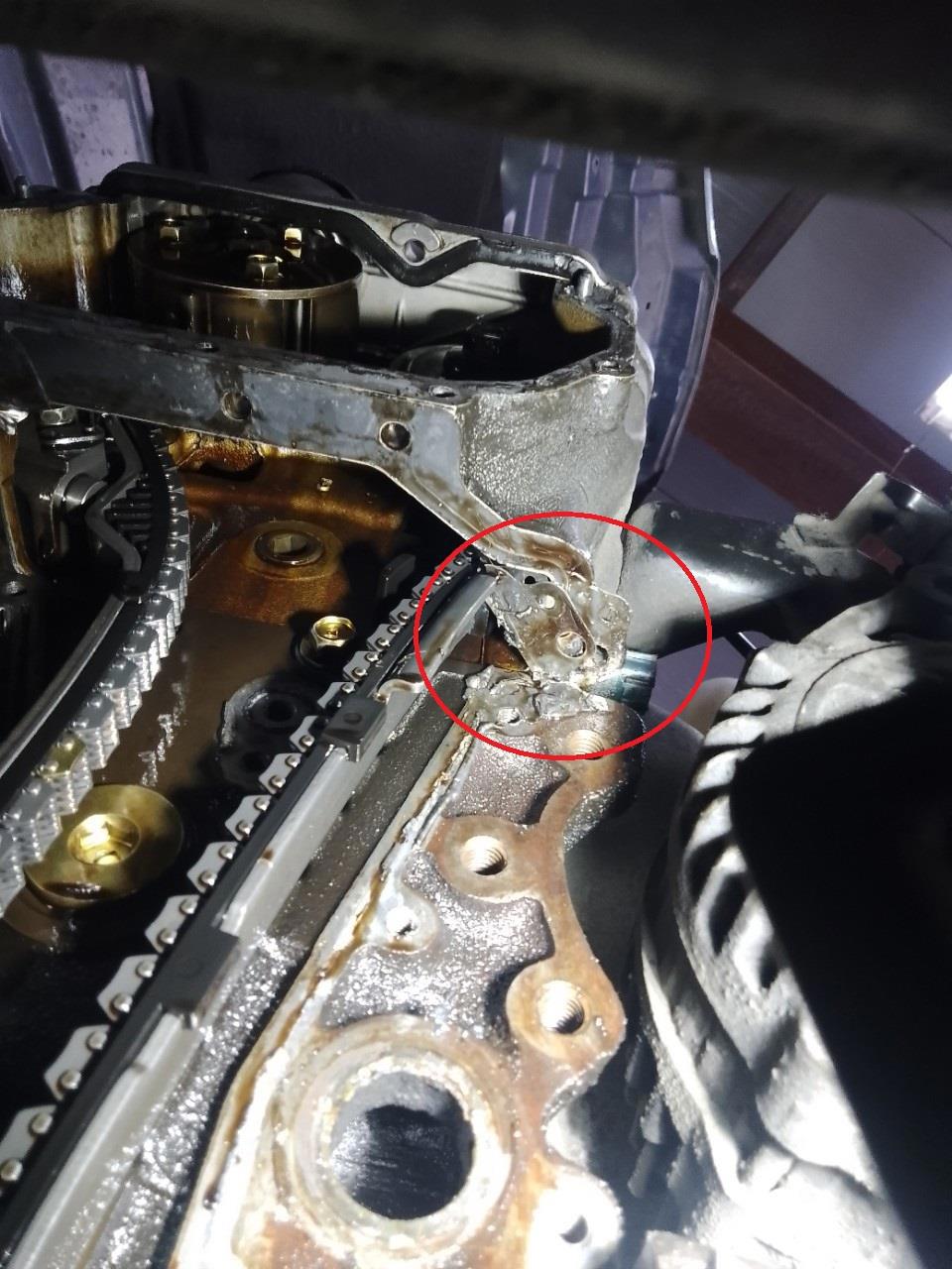 Чтож, пришло время охренительных историй, заваривайте чай и устраивайтесь поудобнее. Началось всё с того, что машина сдохла. Встала, и перестала заводиться. Владелец был около деревни недалеко от города, вызвал эвакуатор, и пока сидел ждал начал обзвон сервисом, куда можно было бы обратиться, но все его слали лесом. Эвакуаторщик застал его за этим занятием, и сказал, что есть сервис у его знакомого около ГАИ, вот туда он его и отвезет. И отвез. Там сказали, что машину продиагностируют, и скажут что и как. Диагностика заняла три (3) дня. Там на пол-часа работы было, серьезно. Приговорили датчик положения коленвала и вытянутую цепь. Вообще, подозреваю что квакнул датчик положения, но у Ниссанов эти проблемы взаимосвязаны, и исключить одно либо другое - легко. Но ладно, допустим и то, и то. Установка новой цепи заняла три (3) месяца. Три. Месяца. Ну ок, они ему ещё цепь продали, которая, допустим, шла 2 недели. Работы реально на два дня, если ты не обезьяна, а там были как раз обезьяны. Началось все с того, что эти болваны отодрав поддон не выкрутили тот самый болтик, и сломали крышку. Потом полтора или два месяца бегали с горящей жопой и думали что делать, затем собрали, поломав половину болтов, и появилась течь. А есть тут один маааленький, но важный нюанс. Крышка центрируются двумя направляющими, вот они: