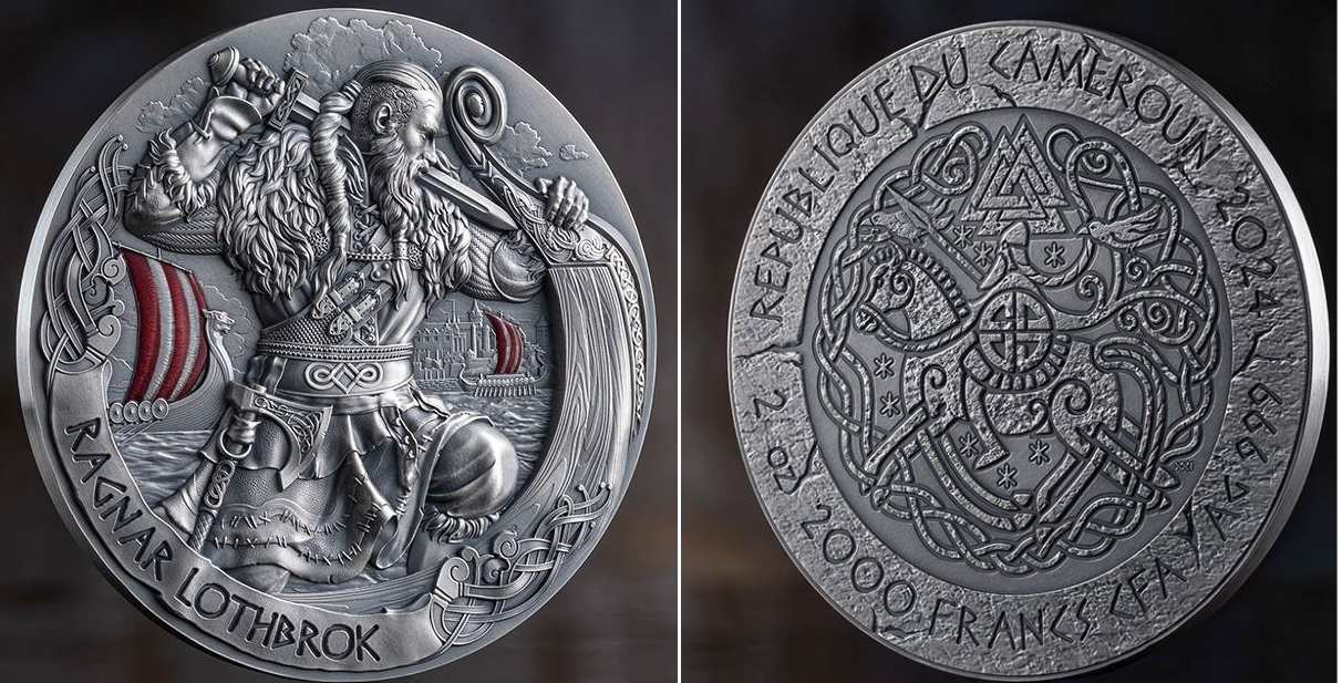 Рагнар Лодброк, серия "Дорога в Вальхаллу", 2 унц., серебро, антик финиш, Камерун, тираж 500 шт.