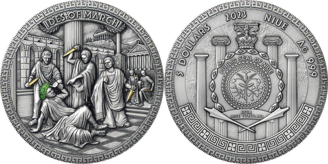 Мартовские Иды, серия  "Знаменитые убийства", Ниуэ, антик финиш, 2 унц., тираж 300 шт.