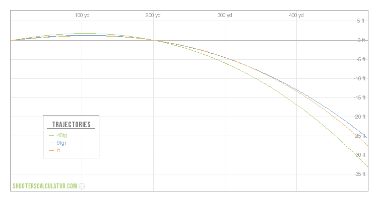 Сравнение траекторий пуль из Томми, ППШ и ПП под патрон 9х19. На дистанции до 200 метров критической разницы нет.