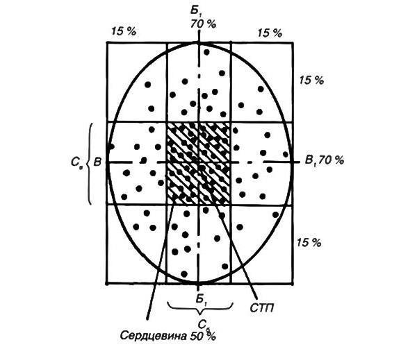 В свою очередь для ППШ сердцевинные полосы рассеивания лучшей половины попаданий (70 % попаданий внутри полосы) по высоте и ширине – 10 см. То есть при стрельбе одиночными томми получается даже точнее.
