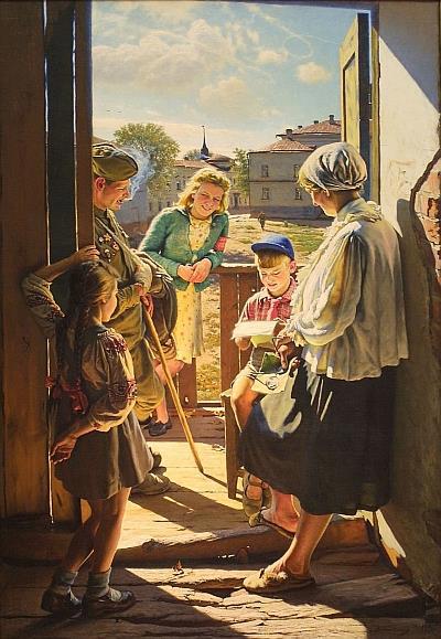 Многие художники пользовались этим эффектом. Возродили его импрессионисты, особенно отличались Клод Моне, Эдгар Дега и Пьер-Огюст Ренуар. Они же работали в жанре пленэр, живопись на открытом воздухе. Но есть и советскмй художник, который работал, естественно, в стиле соцреализма, но не чуждался приемов импрессионизма. Делал это тонко, совмещал задний свет и камерную живопись. Звали его Александр Иванович Лактионов. И вот самая известная его картина - "Письмо с фронта".