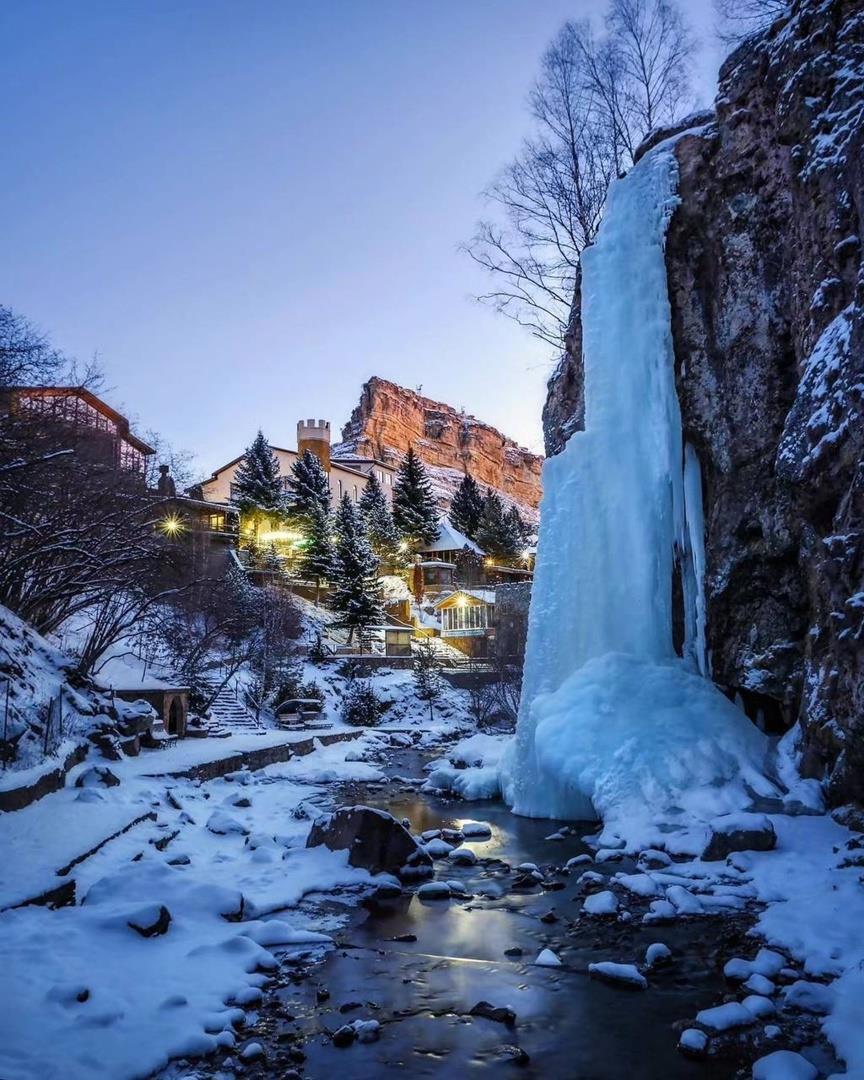Почему я сейчас вдруг об этом вспомнила? Наши друзья в воскресенье возили туда своих гостей и сегодня поделились фотками. Хочу вам показать. Потому что действительно выглядит это очень необычно! Ведь у нас мороз не большой, а вода все-таки замерзла.