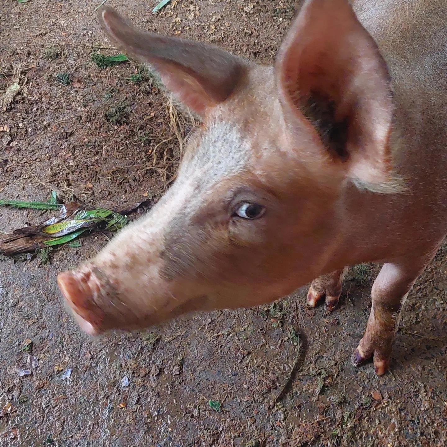 Вот, собственно, вышибаемая дверь на заднем плане. А утка просто у свиньи подкармливается (да, я в курсе, что утки однажды можно не досчитаться).