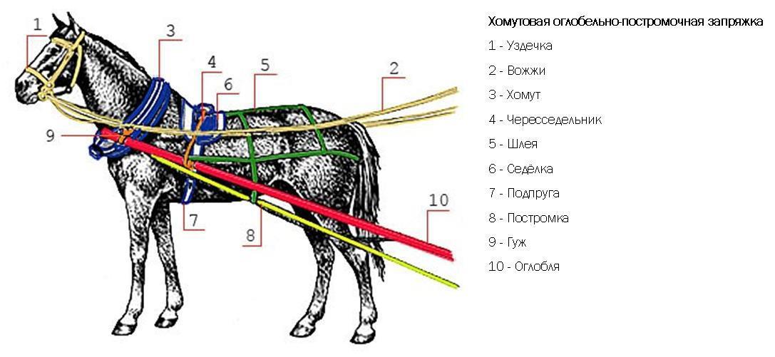 Скрепляют оглобли с хомутом не с помощью гужей и дуги, а специальными ременными или железными гужиками (запряжниками).