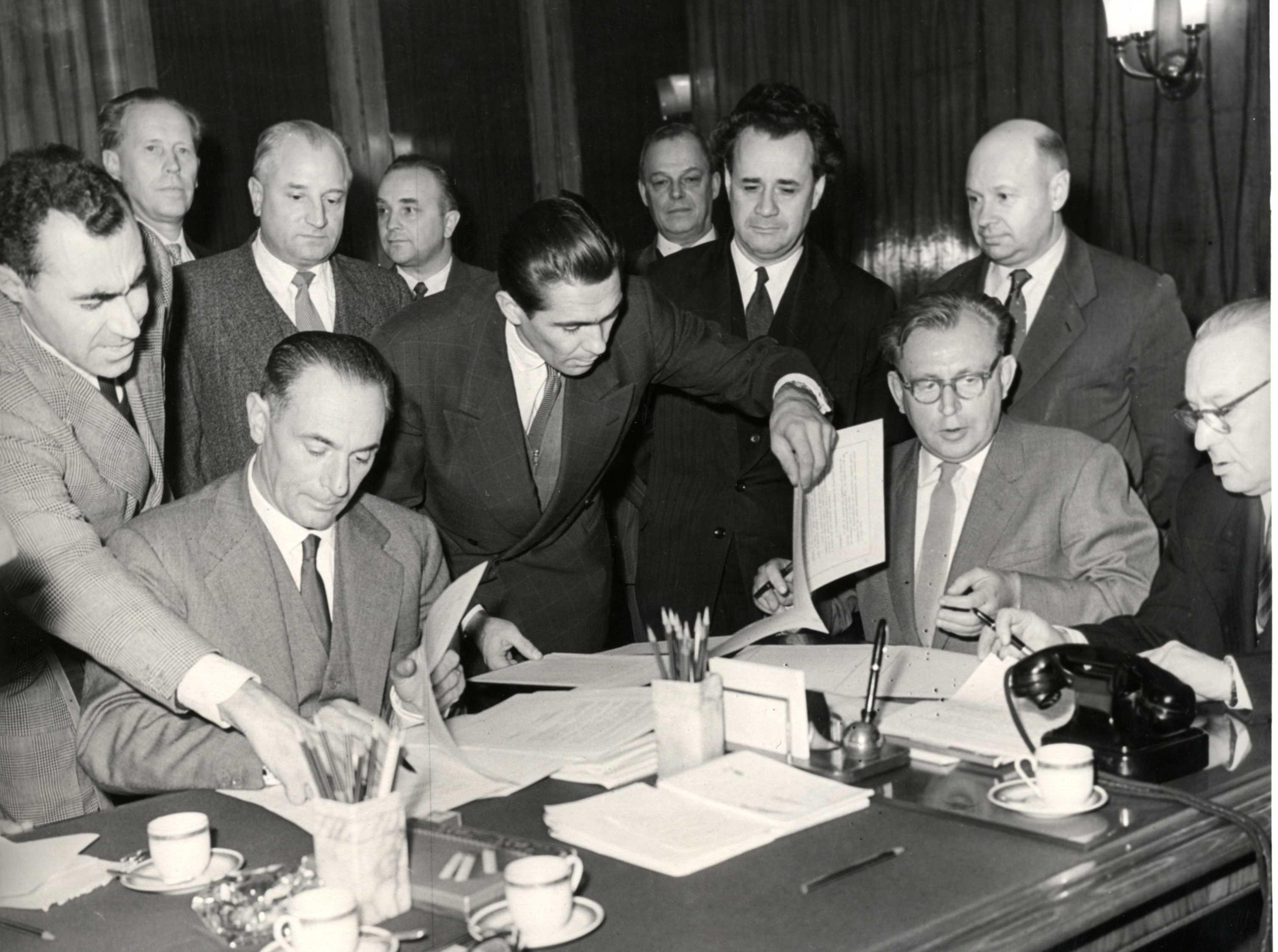 Маттеи подписывает договор между ENI и "Союзнефтеэкспортом". Москва. 1960 год.