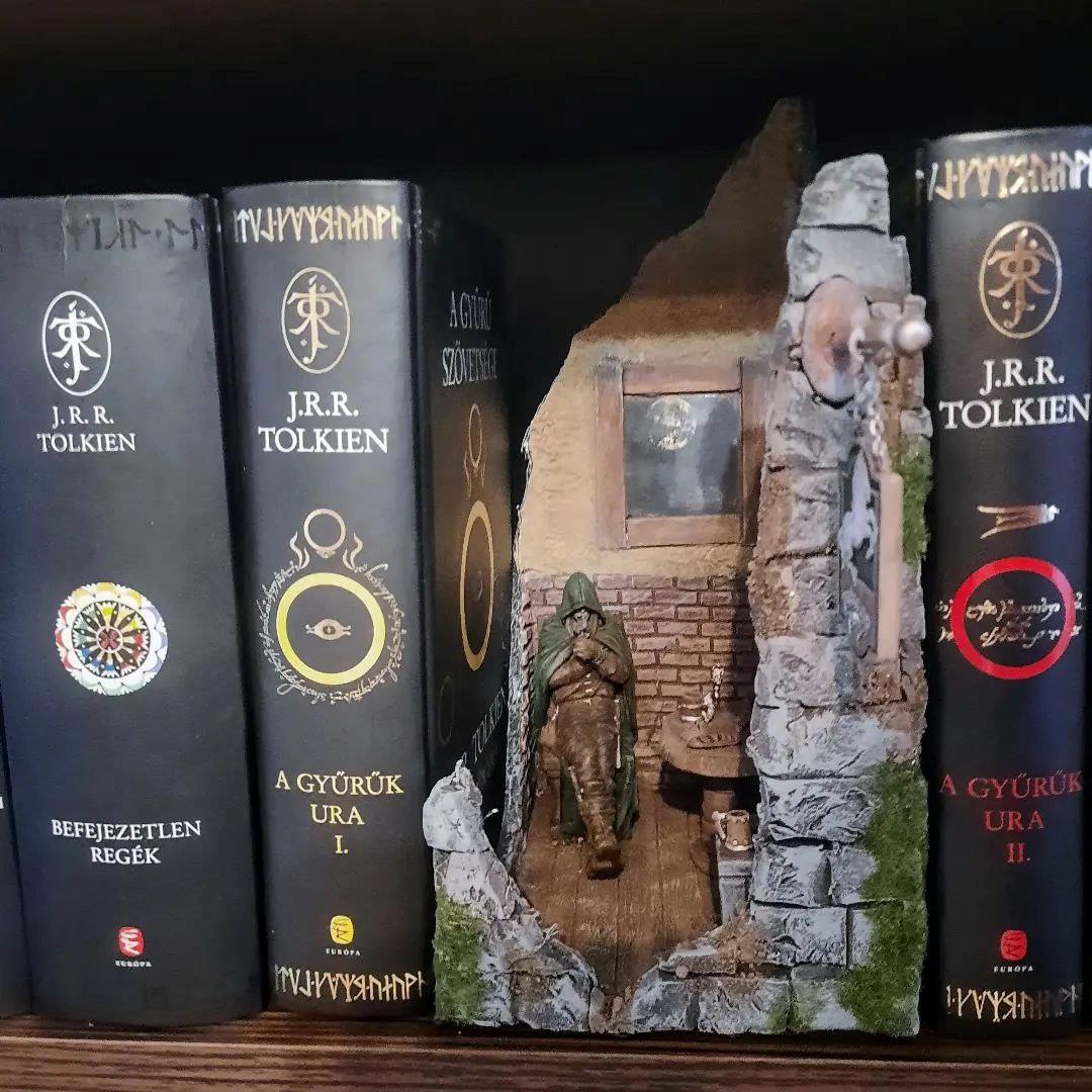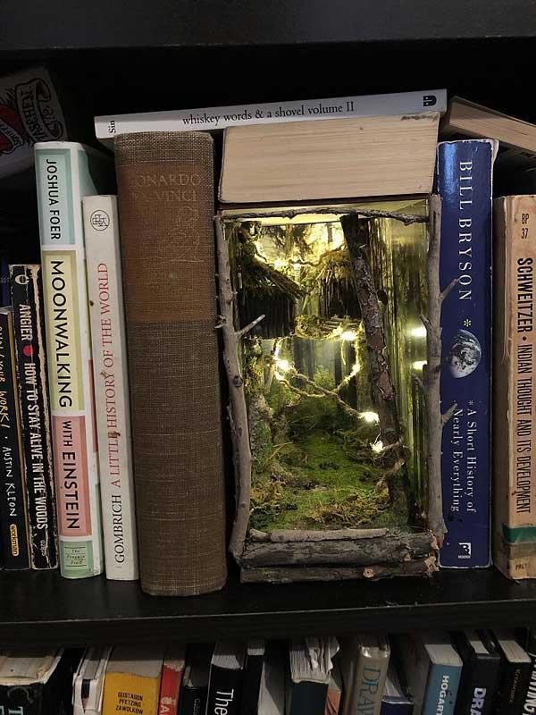 Автор: БродягаБукнук - это небольшая инсталляция напоминающая кукольный домик, вставленная между книг на полке.