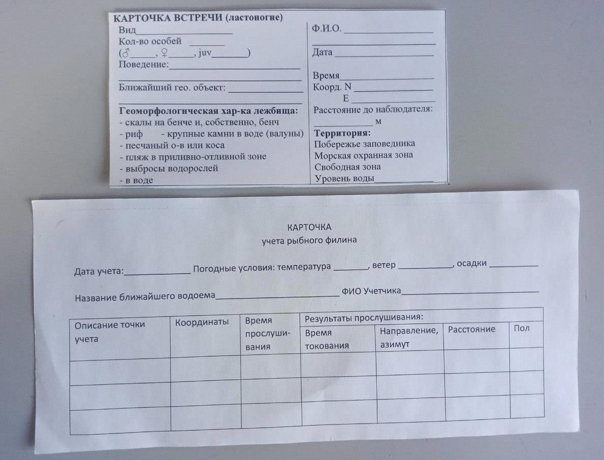 Ну а это не совесм карточки, скорее "мурзилки" по снятию размеров. Так-то, на берег иногда выкидывает мертвых зверей, которые тоже проходят по отдельной категории учета