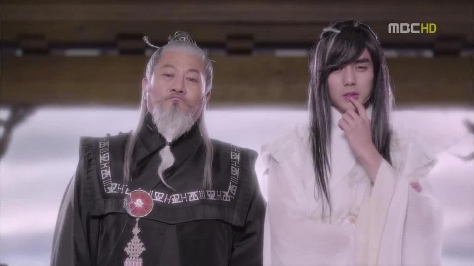 Тут он вместе с Ёмлой. Надо сказать, этот артист, Пак Чун Гю, играл вместе с Ю Сын Хо и в "Воине Пэк Тон Су". Там он играл "дядюшку" Само, который воспитывал Уна и его друга Тон Су. Ну, что сказать? Видимо, Ёмла тоже не удержался от перевоплощения, наконец уговорив Юйди, чтобы тот побывал в его шкуре, когда стараешься-стараешься для людей, а тебя все поносят и видят в тебе лишь воплощение зла. Зато сам Ёмла в этом воплощении наконец получил свое заслуженное доброе отношение окружающих. Интересно, что он скажет Юйди, когда тоже вернется на небеса и все вспомнит?.. :)