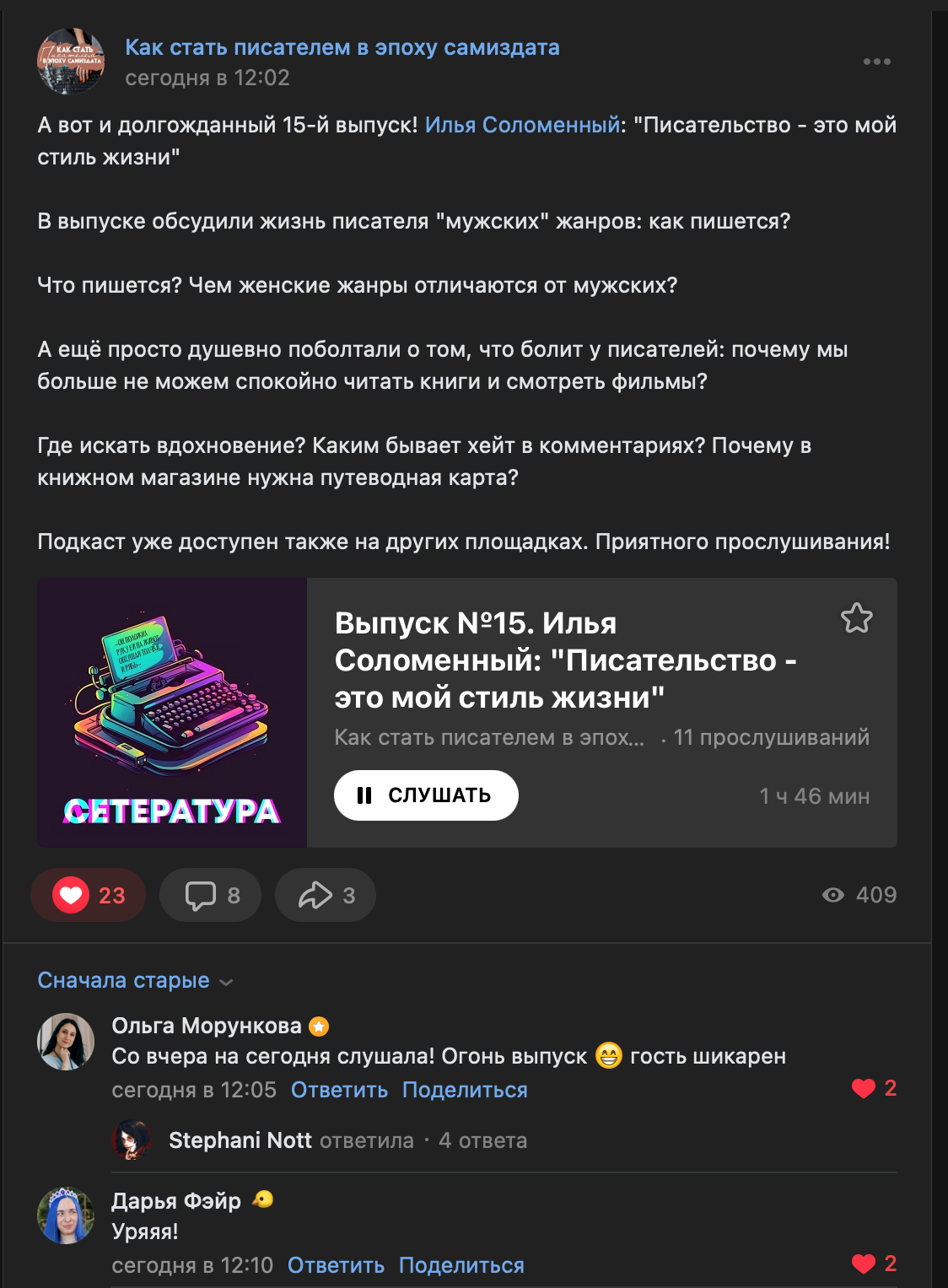 Вчера вышел выпуск классного подкаста "Сетература", где я выступил приглашённым гостем!