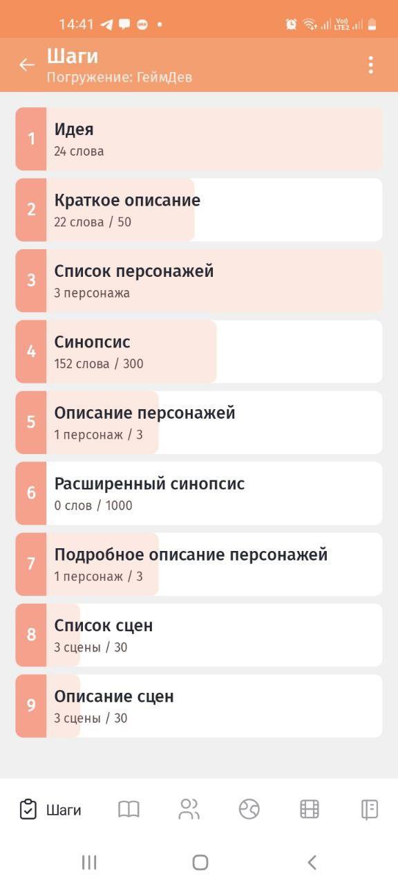 В приложении удобно реализована функция пометок для глав - можно указать стадию проработки каждой из них.
