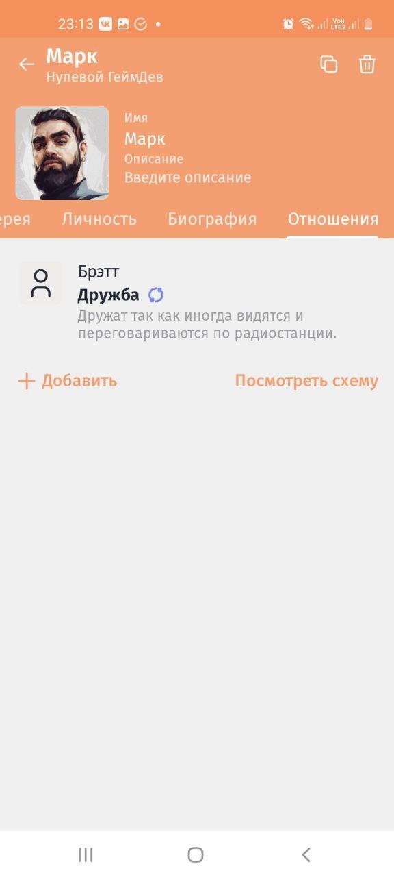 Отдельно хочу отметить проработку персонажей. Для каждого есть карточка с фото, галереей изображений, биографией, описанием мотивов и целей, а также возраста, пола и внешности. Такие детальные справки помогают при описании героев - можно быстро проверить их характеристики и не нарушить внутреннюю логику.