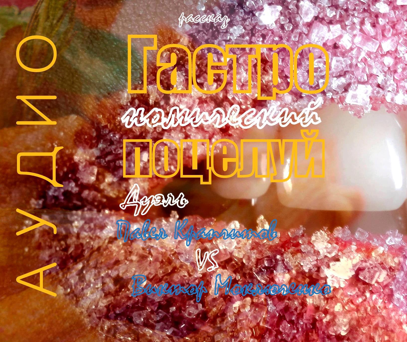 Я — автор рассказа «Гастрономический поцелуй», Виктор Моключенко — опытный чтец. Мы продолжаем свою шуточную дуэль. Я начитал вышеуказанный рассказ, потом он начитал. А теперь просим вас решить, кто лучше. Рассказ короткий, много времени у вас не отнимет.