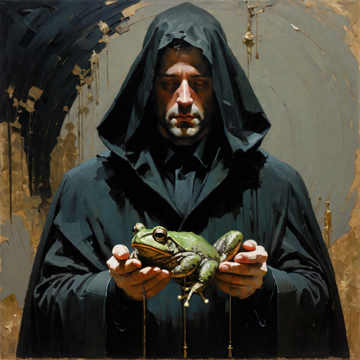 Автор: Яна ВетроваНейросеть не смогла мне человека с жабьей головой изобразить, так что просто человек и жаба: