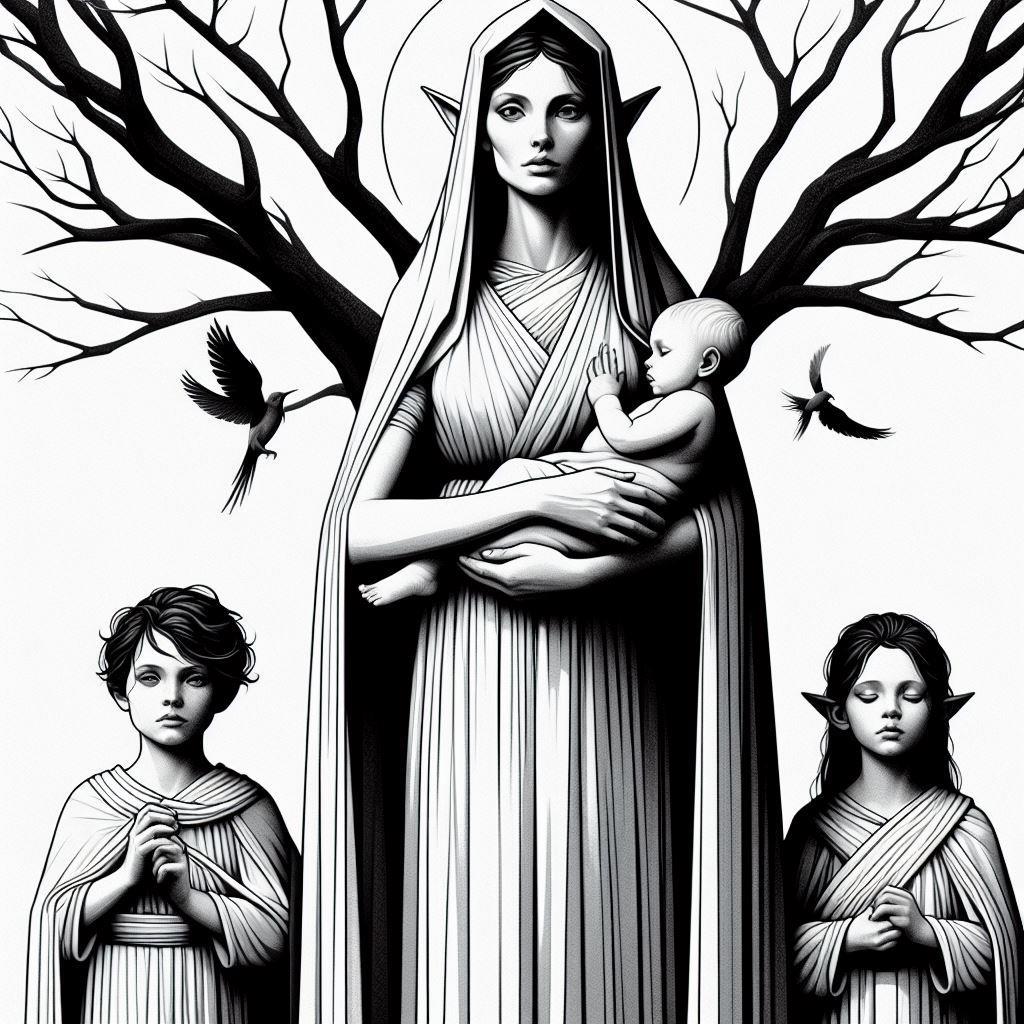И там было несколько артов эльфийки с ореолом, как у святых. И, пусть, я такого ничего не задумывала, но мне предложили интересную тему: обсудить "святость" эльфов. То бишь, с религиозной точки зрения. И без ругательств.