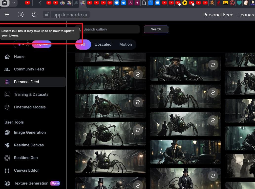 Нейросеть Леонардо способна создавать увлекательные изображения и иллюстрации для ваших произведений. После регистрации в системе вы можете использовать до 150 токенов каждый день. Обновление происходит в 3:30 ночи для меня как жителя области Санкт-Петербурга. Чтобы узнать подробнее, когда произойдет обновление токенов в вашем регионе вы можете навести на знак вопроса возле общего количества токенов.