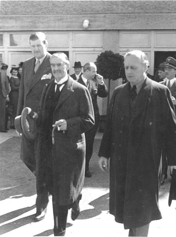 Чемберлен. За две недели до конференции четырех держав он побывал в Баварии. Встречался с Гитлером в Оберзальцберге. Наметили основные положения будущего соглашения.