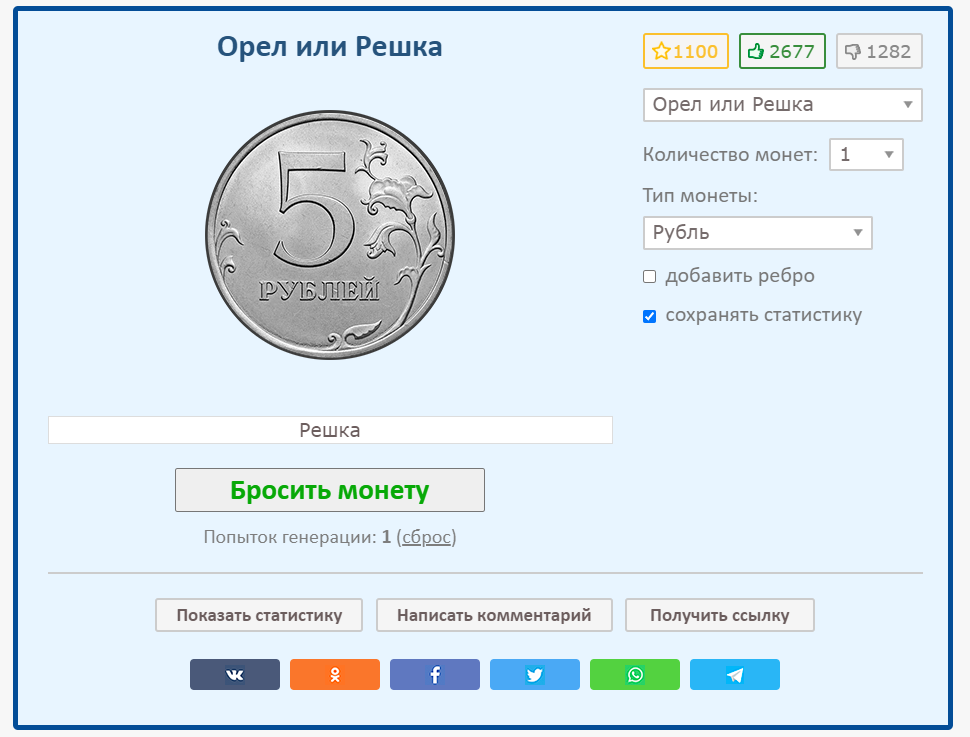 Наличкой давно не пользуюсь, привык всё с карточки оплачивать. Если и возникает потребность сделать выбор который сам не могу осилить - на помощь приходит интернет, в котором есть даже "кидатели монеток", да ещё и с настройками (хоть 10 биткоинов брось):