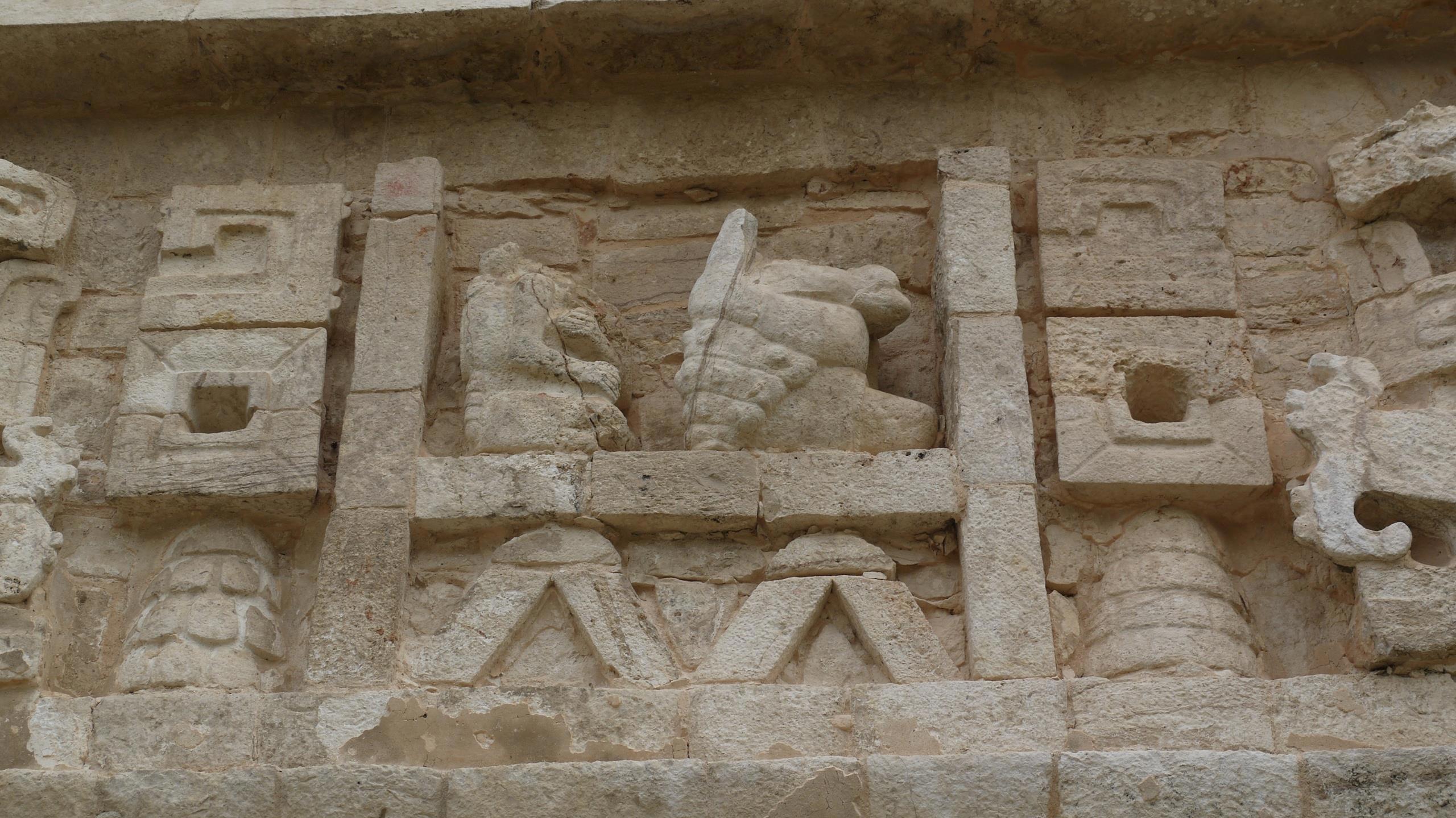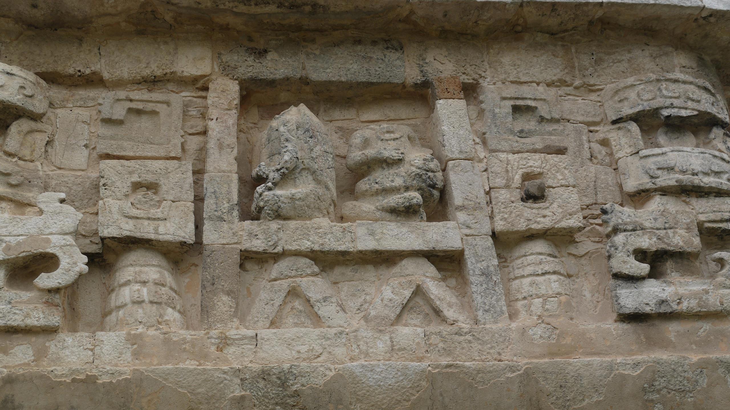 Четыре бога N с фасада Иглесии в Чичен Ице. Мои фотографии. Броненосец, улитка, черепаха и рак.