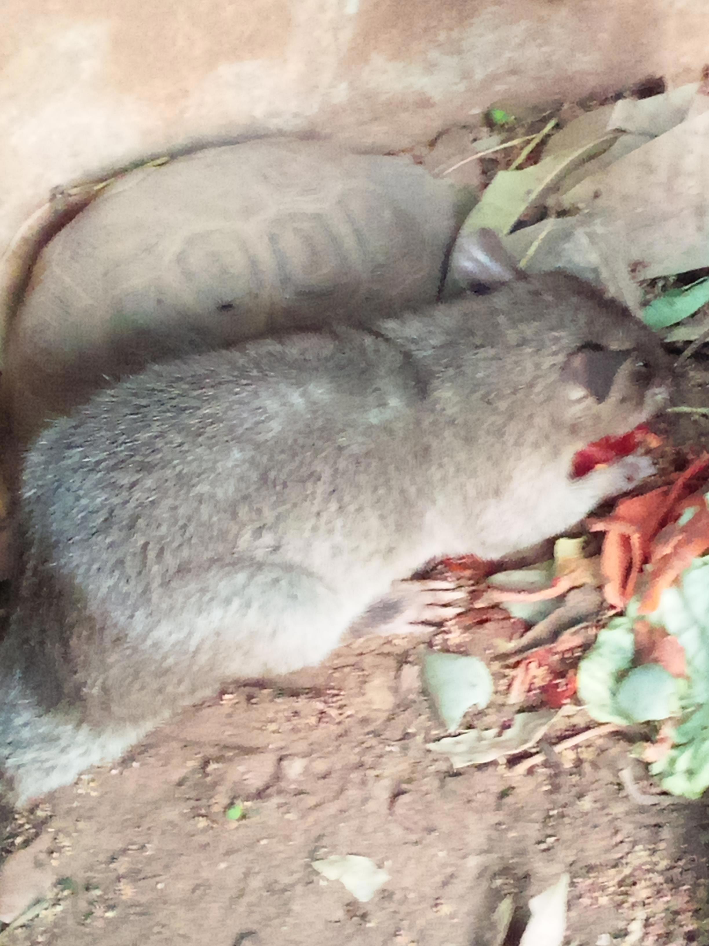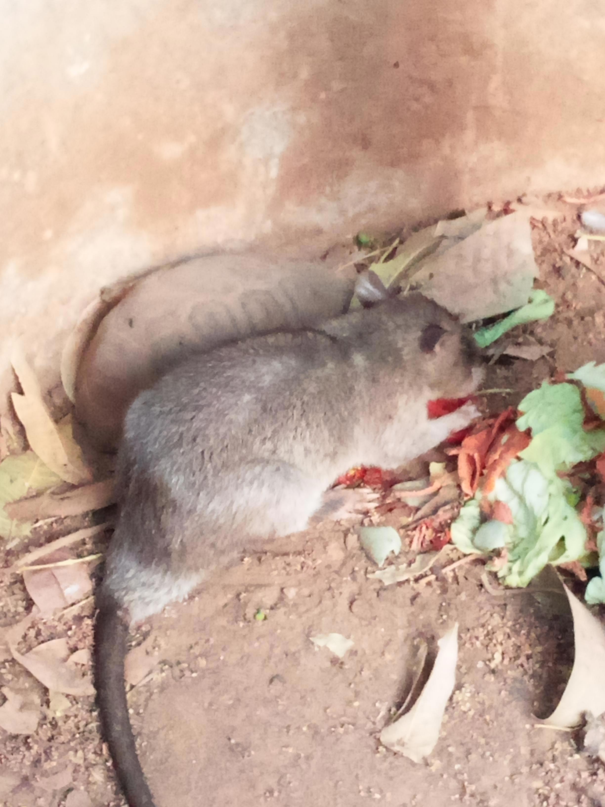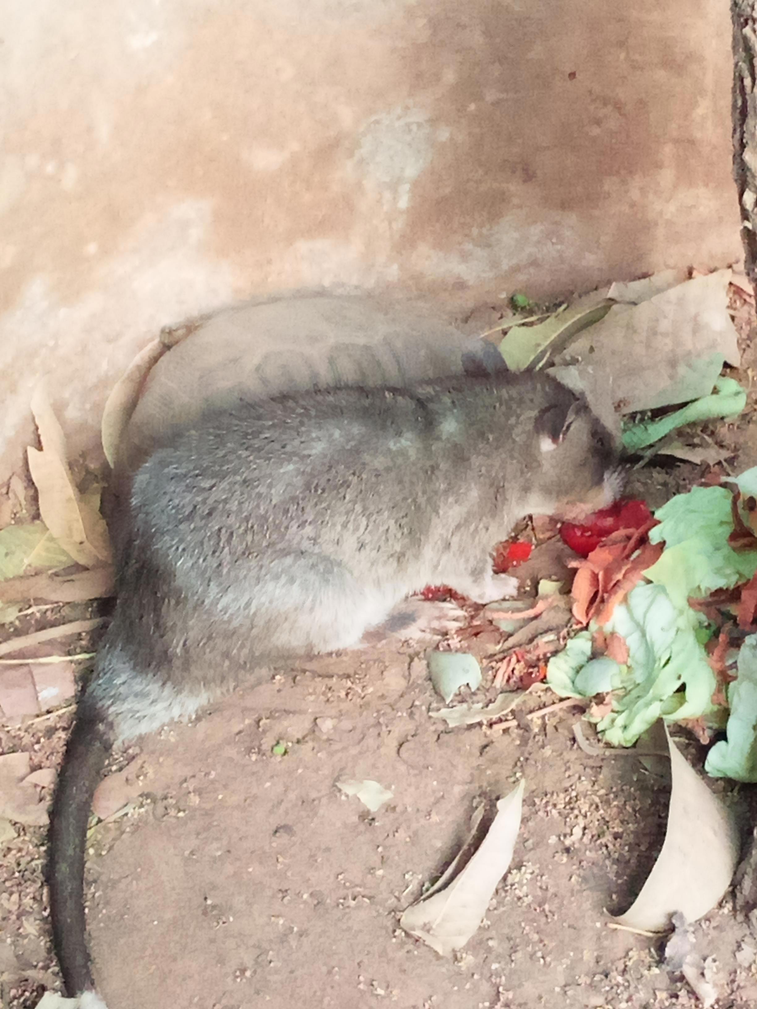 Это ночные зверюшки, и обычно они пугливые и осторожные. Но вчера к нам забрался вот этот юноша (крыс явно мужеского пола и скорее всего молодой). Мы думали, это какая-то случайность. Попутался малость зверь. И вот сегодня он снова заявился! Людей не боится, ходит-бродит себе спокойно. Забрался к черепахе, сожрал помидорки и ушёл. Вчера пил воду в душе у соседей.