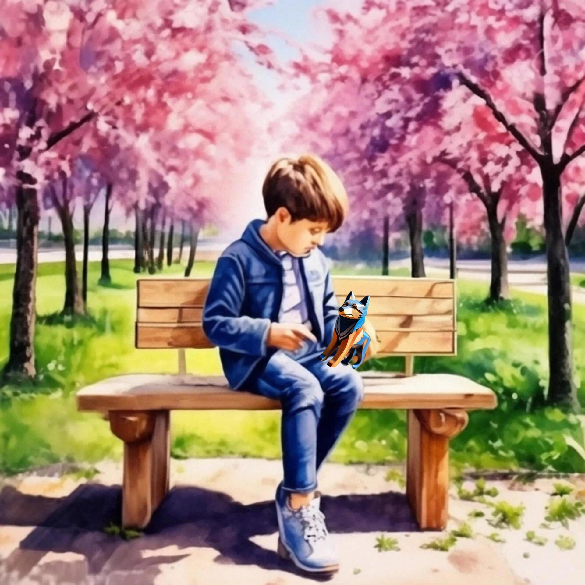 Но его, смотрю, никто не встречает, он идет один, поправляя ранец, висящий у него на правом плече, и явно не торопится к себе домой. Пройдя детскую площадку, он останавливается у небольшого столика, садится на скамейку рядом с ним, достает из ранца волка, и начинает с ним играть.
