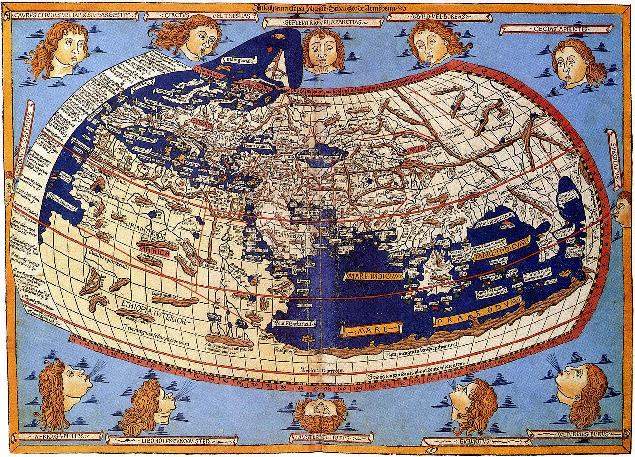 Никакого масштаба нет на этой карте, которую можно назвать первой картой мира.